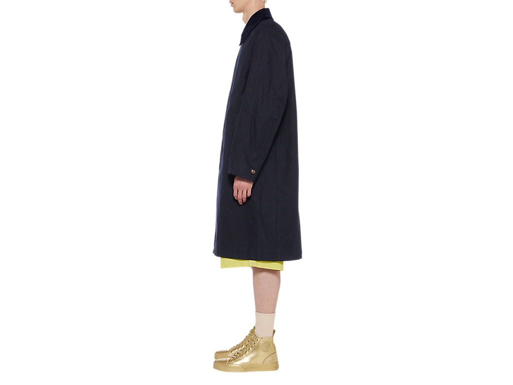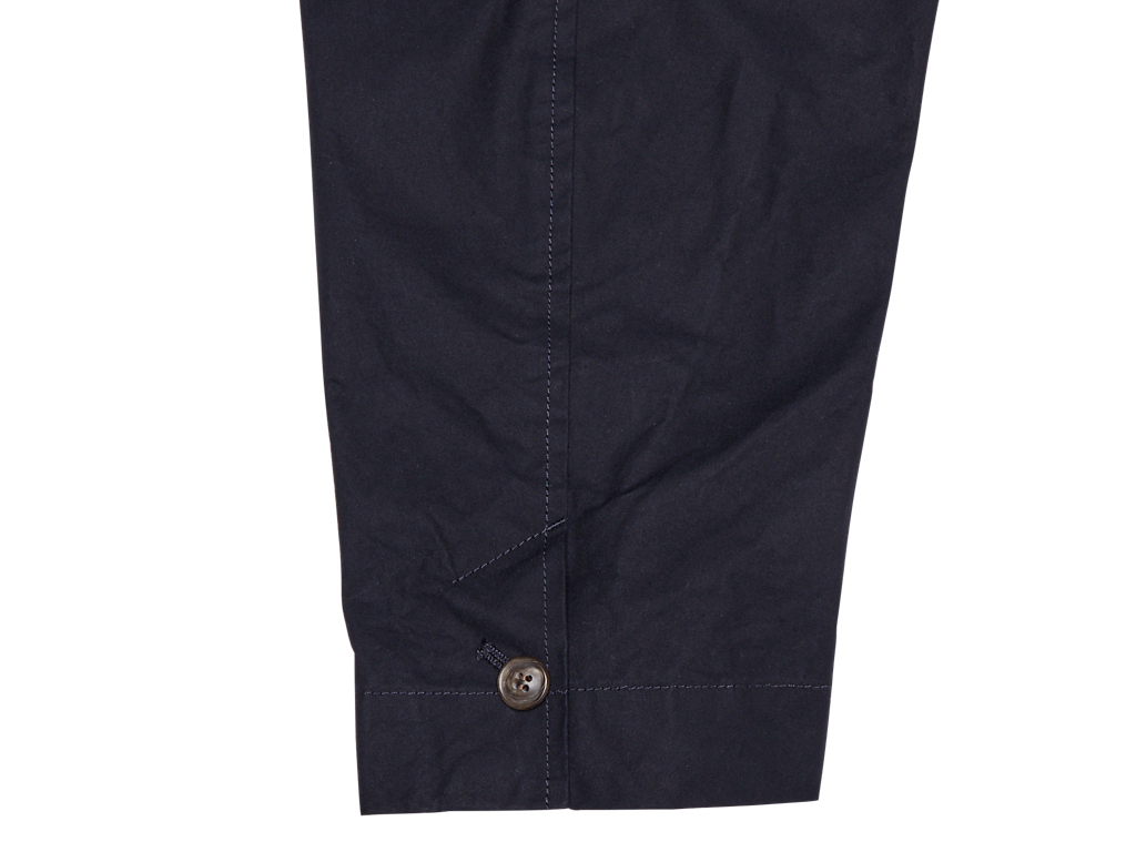 高密度コットンギャバジン生地を使用。ハリとコシのある素材が耐久性と上品なルックスをプラスし、洗練された素材感が都会的な雰囲気を引き立てます。