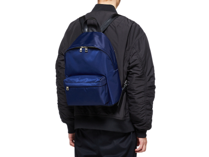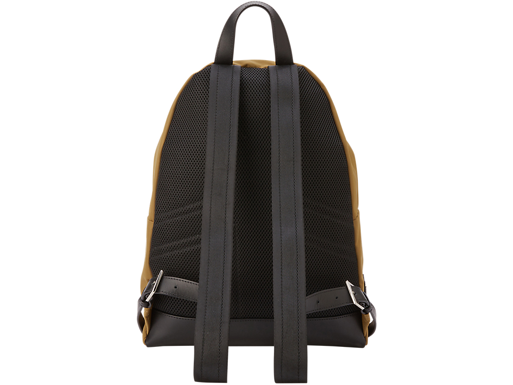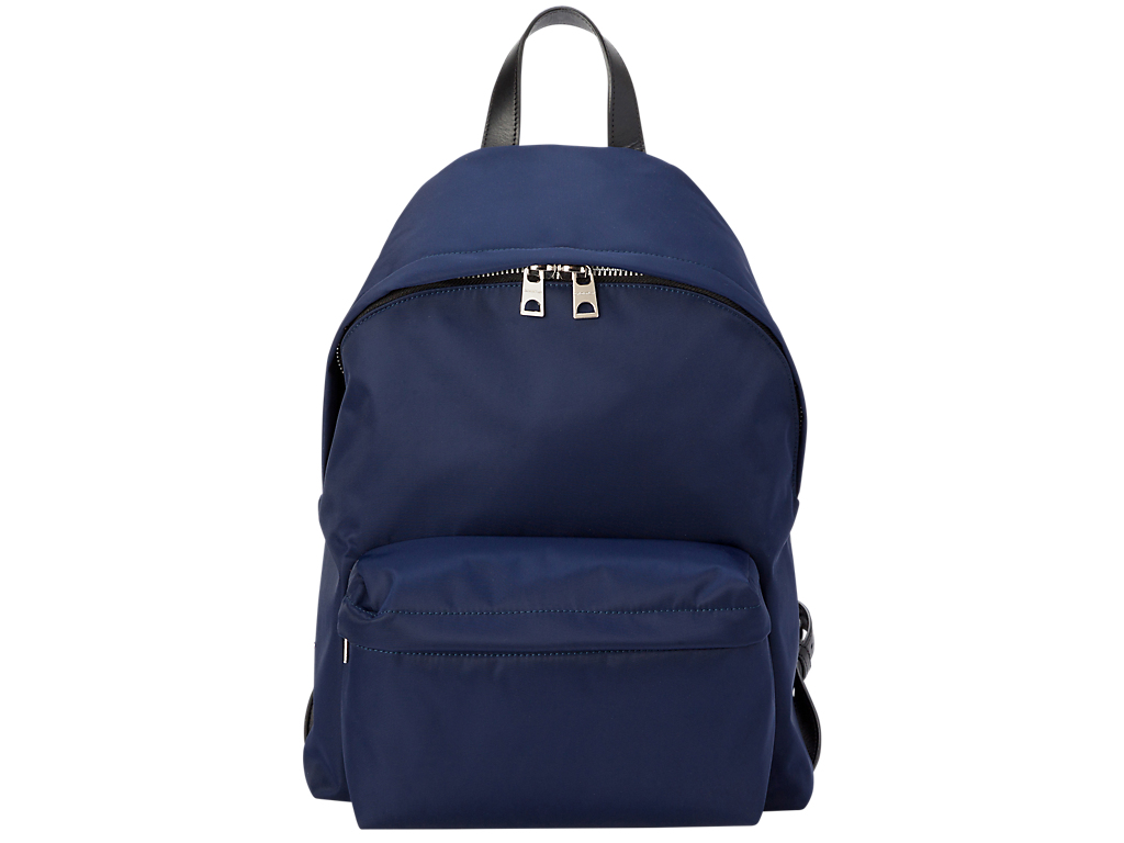 レザーと光沢感があるナイロンとのコンビはカジュアルなアイテムを上品に演出します。シンプルなデザインと色はユニセックスでさまざまなコーディネートに合わせることができる汎用性の高いアイテムです。