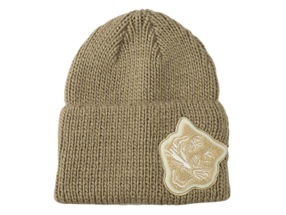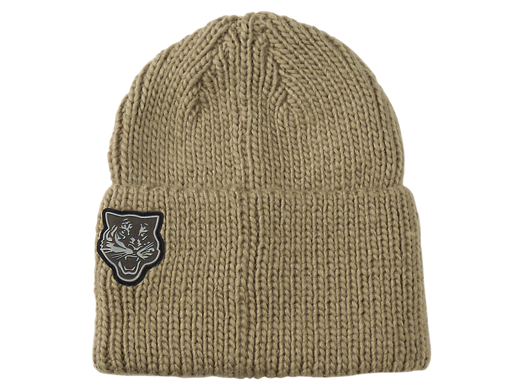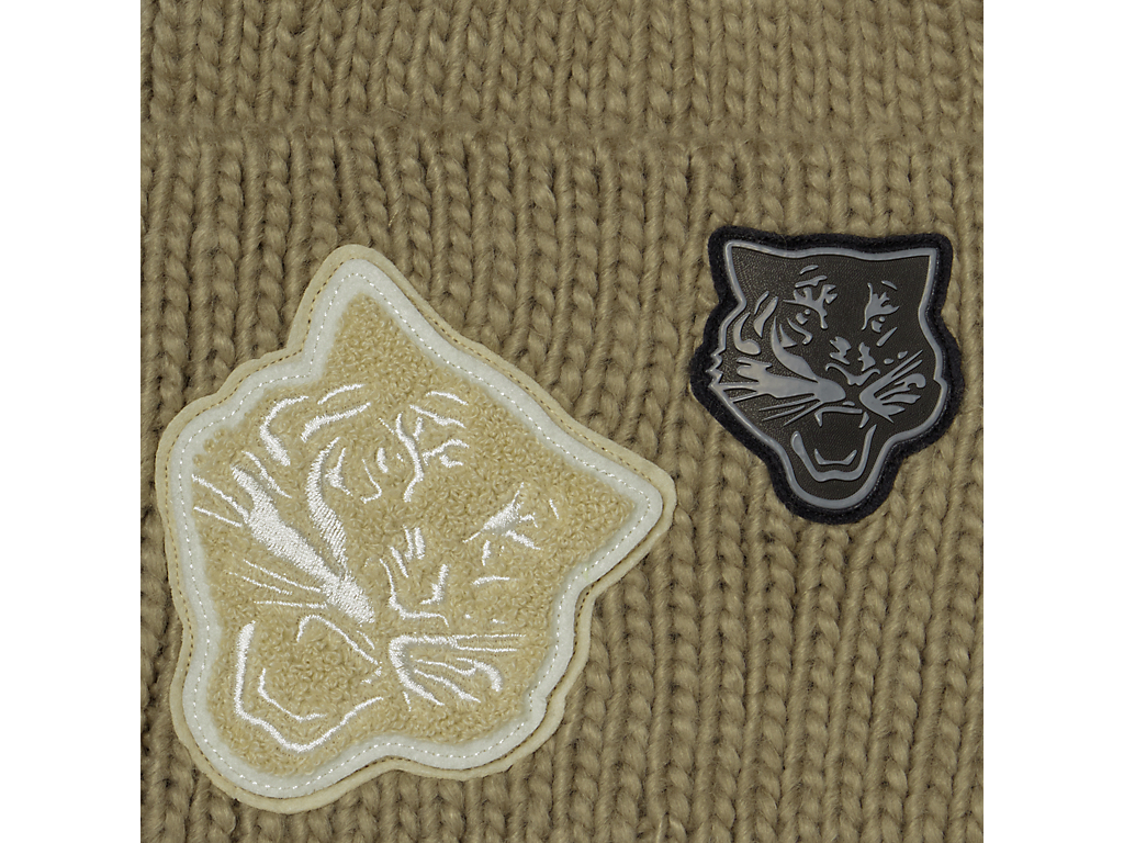2枚のタイガーフェイスのワッペンがポイントのニットキャップ。