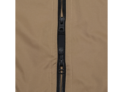 表地はプレーンな仕様、裏地にレトロなボタニカルアートの総柄をプリントした遊び心のあるデザイン。春先の羽織りとして活躍する機能的な一着。