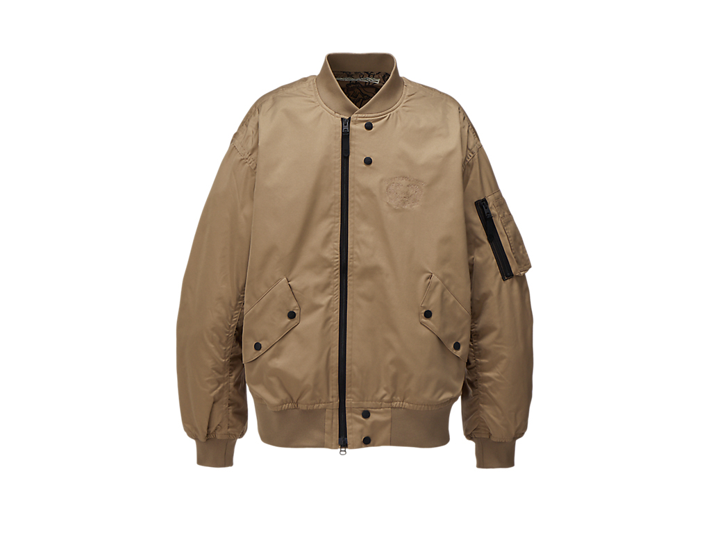 SS25オリジナルの総柄でアップデートを施した、オニツカタイガーを象徴する洗練されたボンバージャケット。