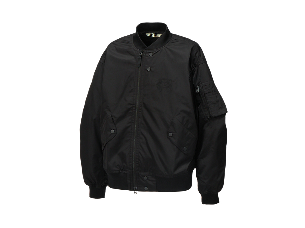 左胸に2体の見返り虎グラフィックとブランドネームを刺繍で配し、個性的な存在感を演出。
