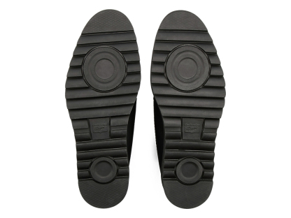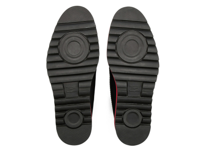 過去のアーカイブのトレーニングシューズに使われていたソールのデザインをベースに、厚みのあるシャークソールで、踏み付け部とかかと部に円形の意匠を配置。