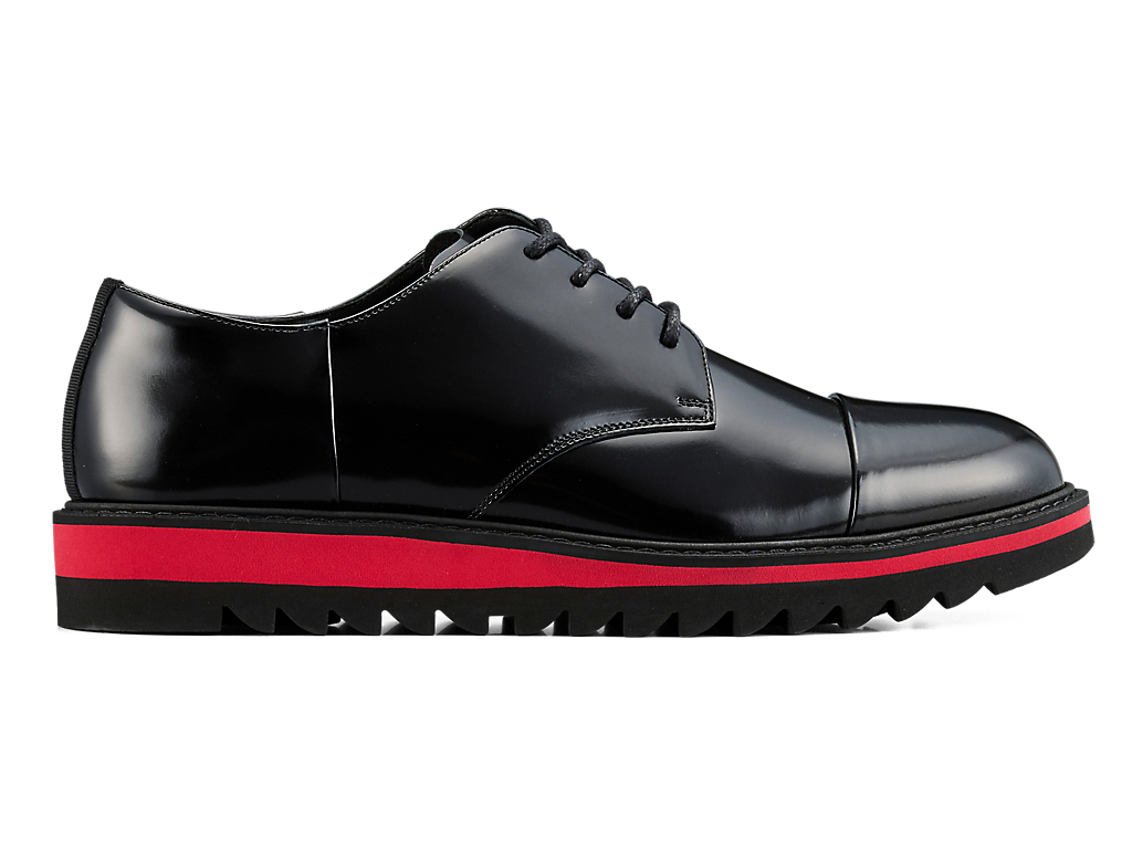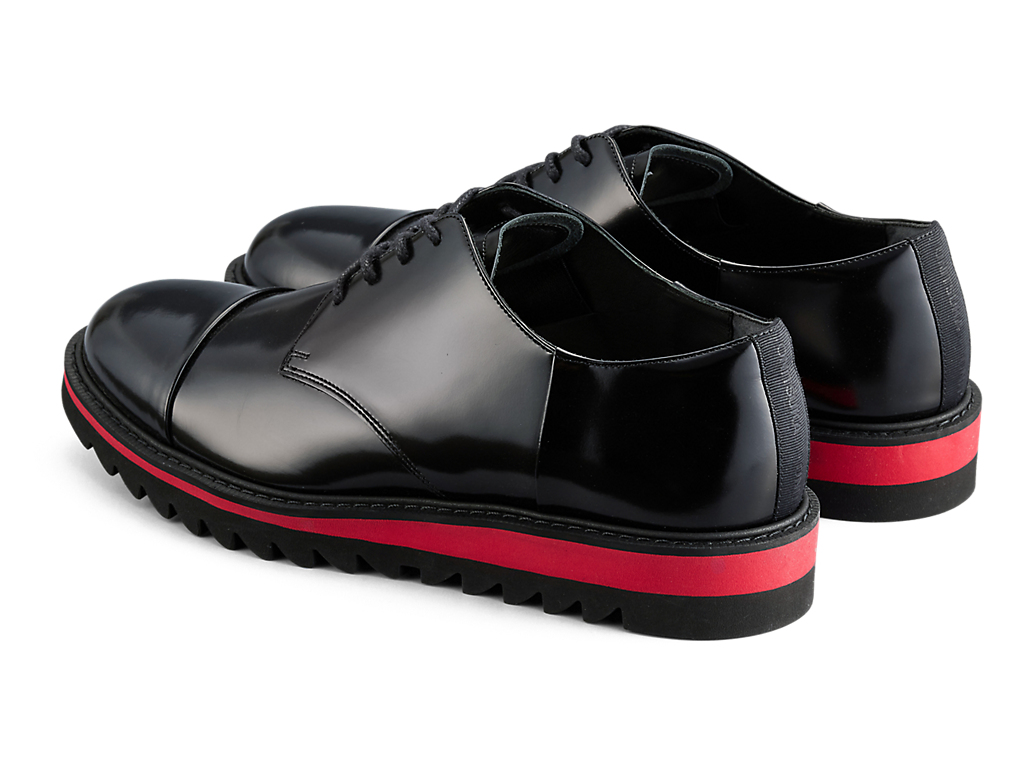 オーセンティックでタイムレスなデザインに甲ゴムを追加しフィット性を高めたダービーシューズ。