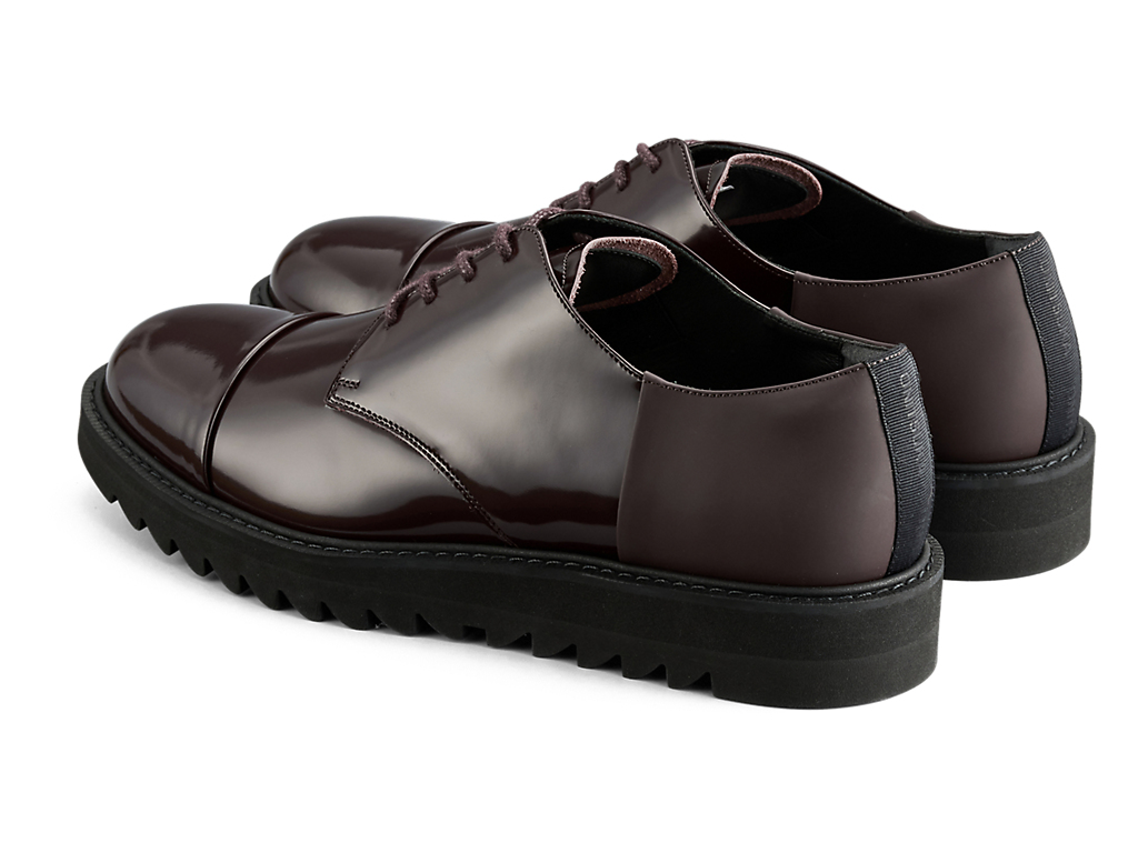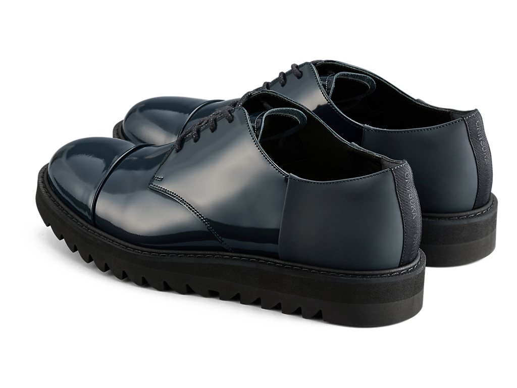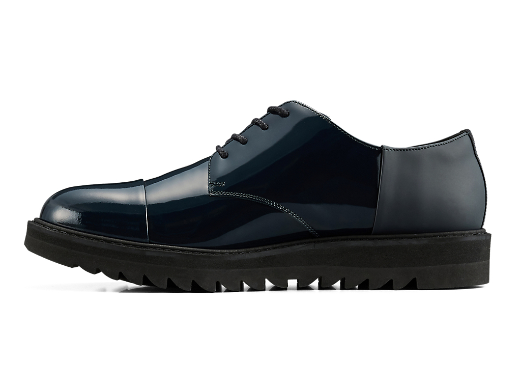 オーセンティックでタイムレスなデザインに甲ゴムを追加しフィット性を高めたダービーシューズ。