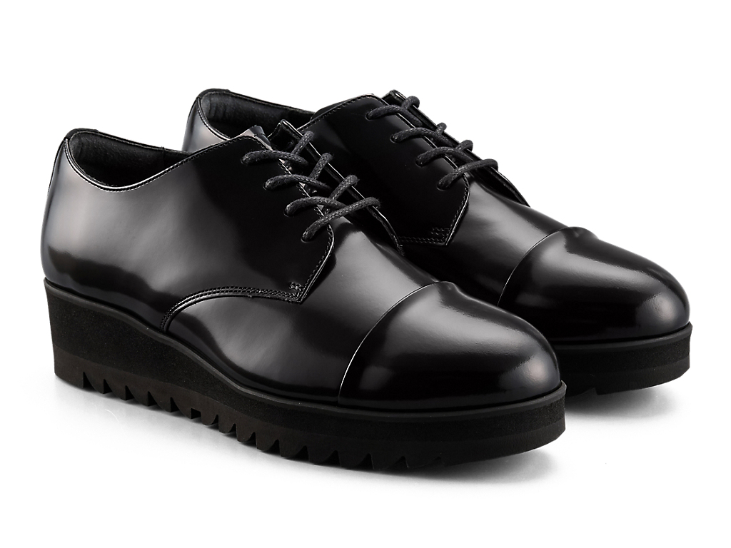 オーセンティックでタイムレスなデザインに甲ゴムを追加しフィット性を高めたダービーシューズ。