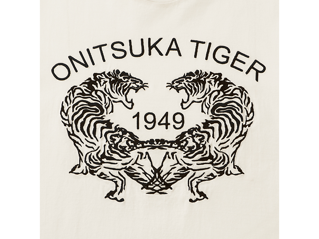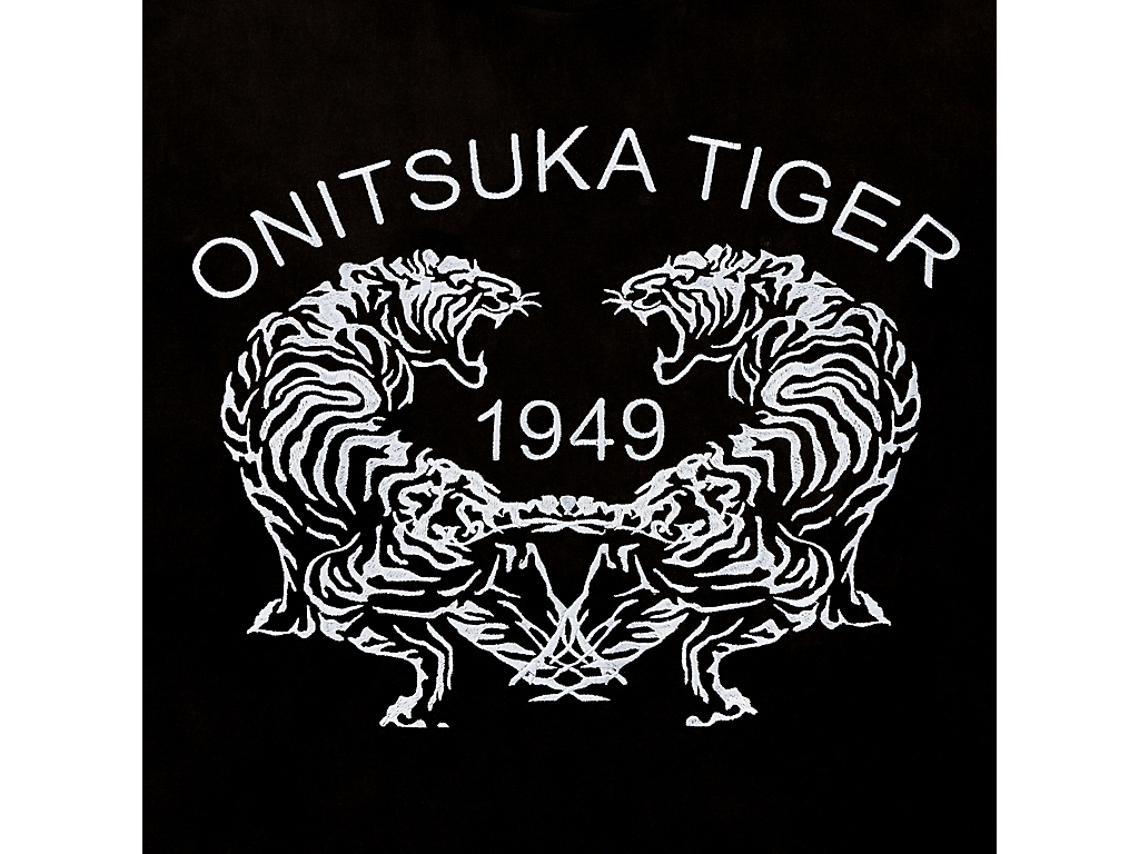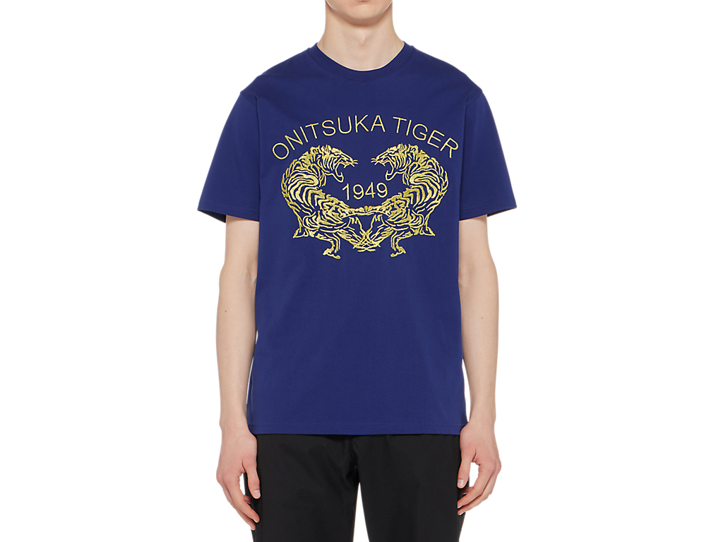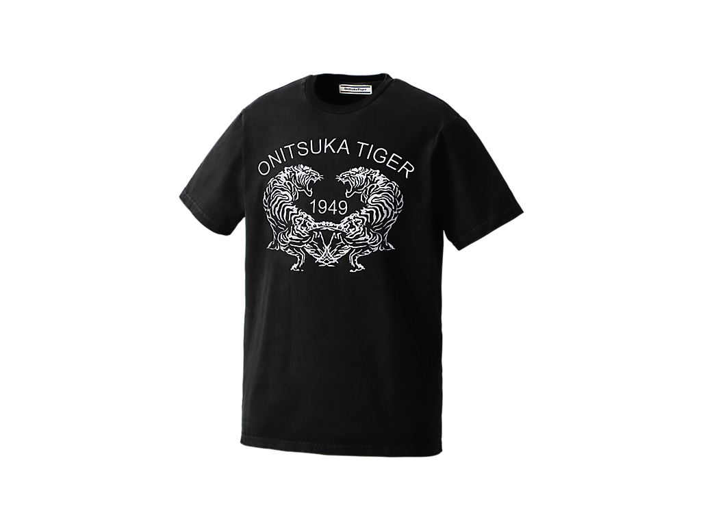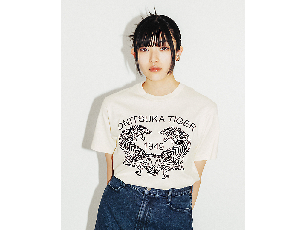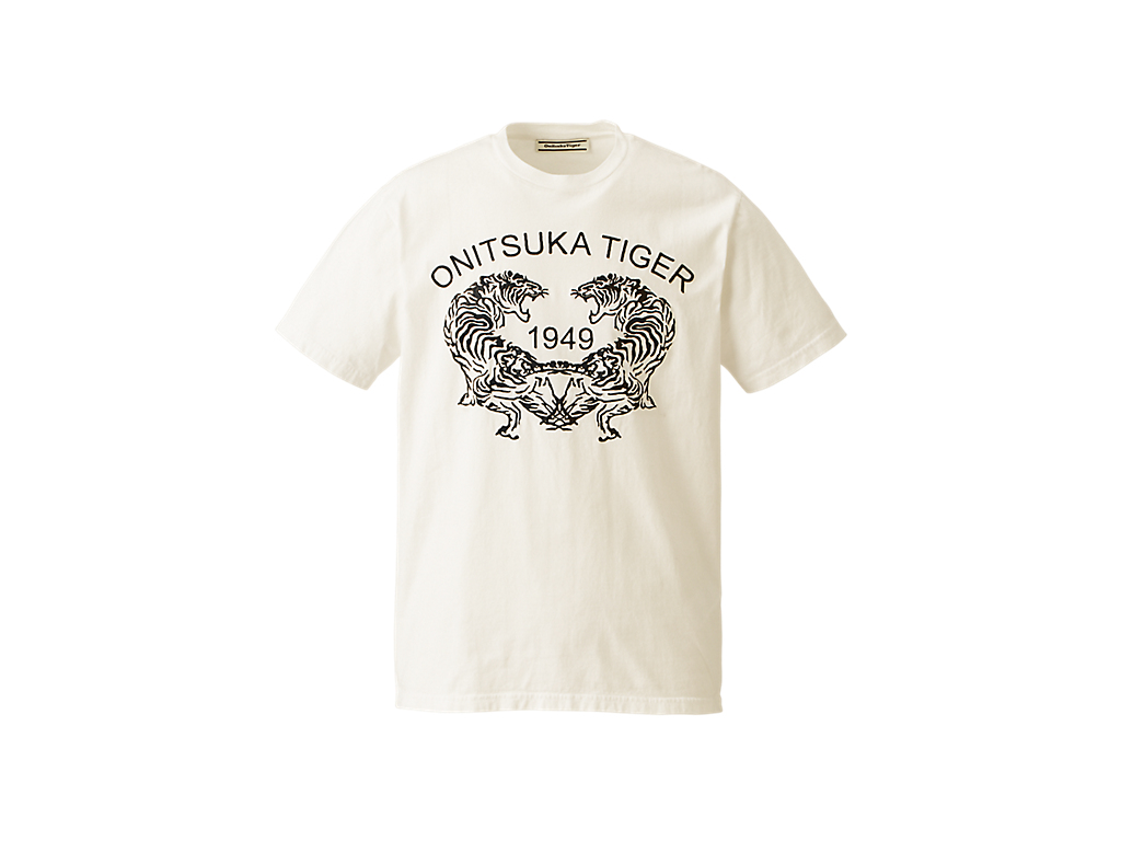 2体の見返り虎のグラフィックを刺繍で表現したTシャツ。