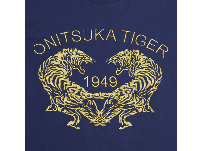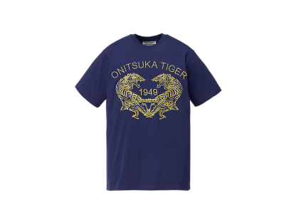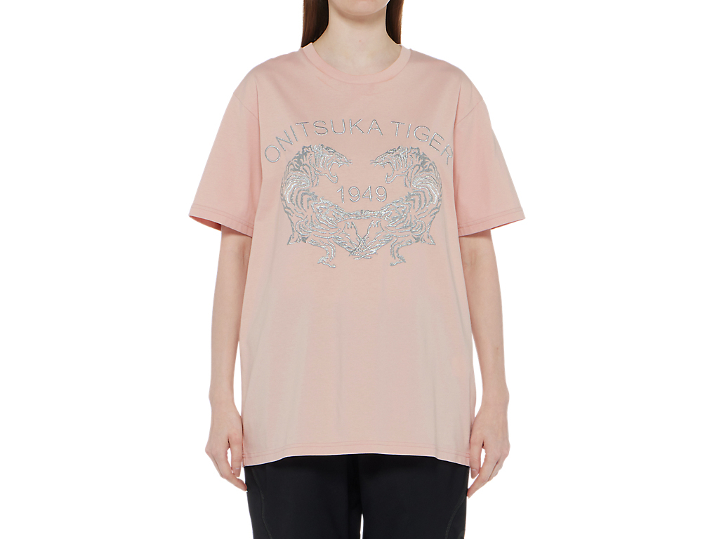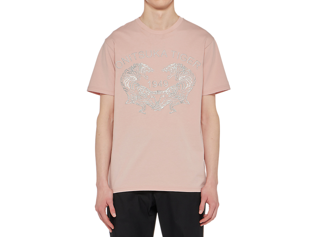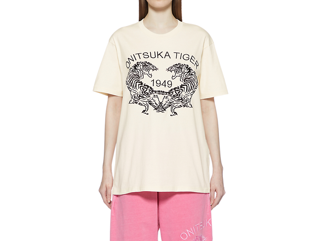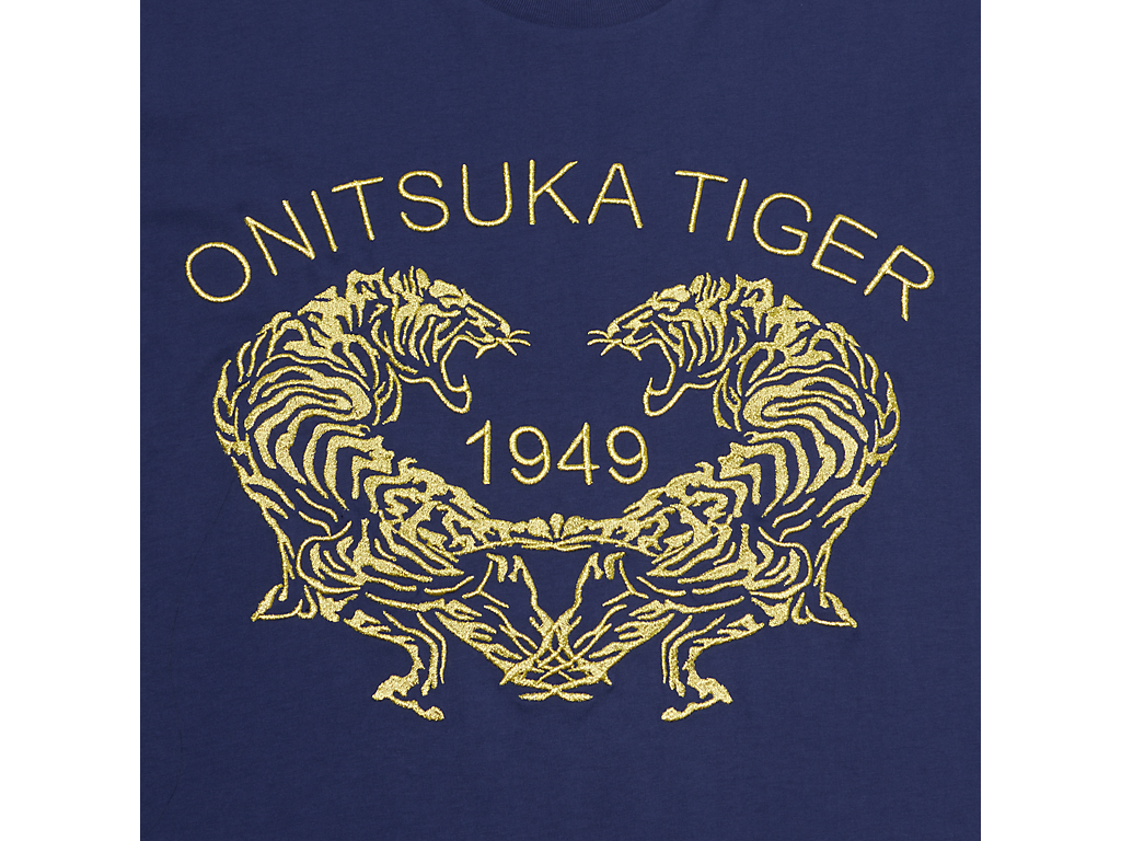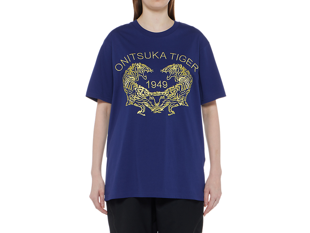 2体の見返り虎のグラフィックを刺繍で表現したTシャツ。