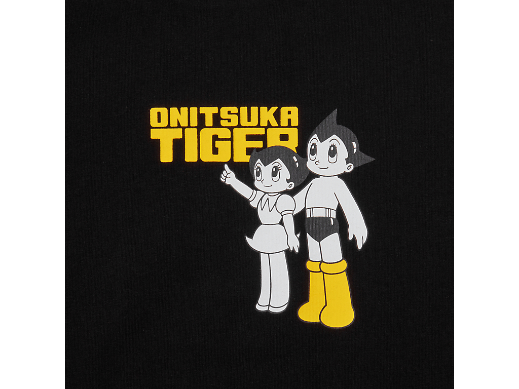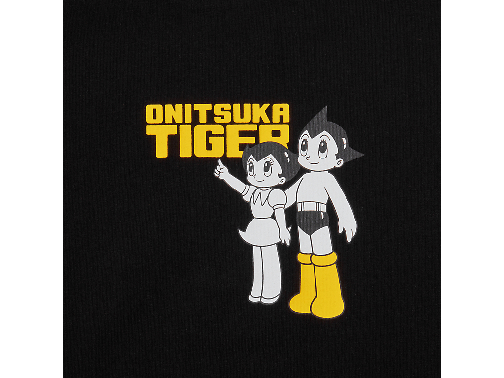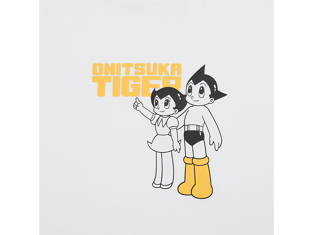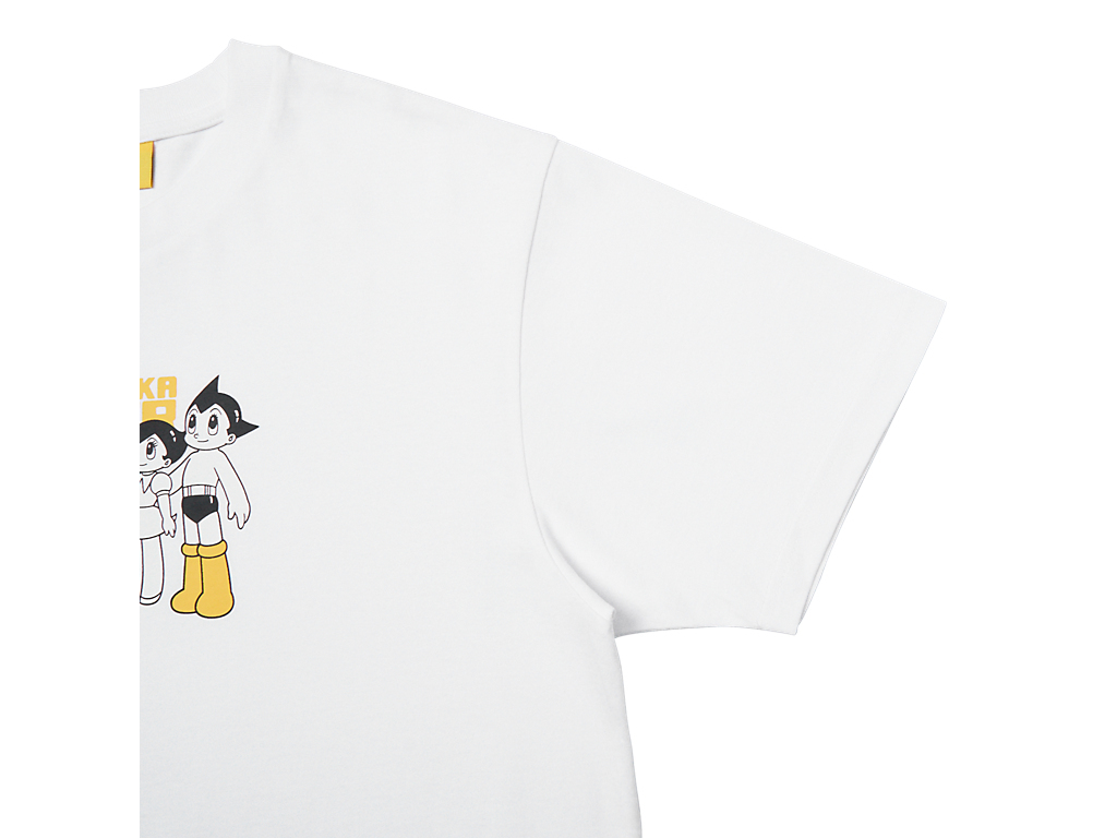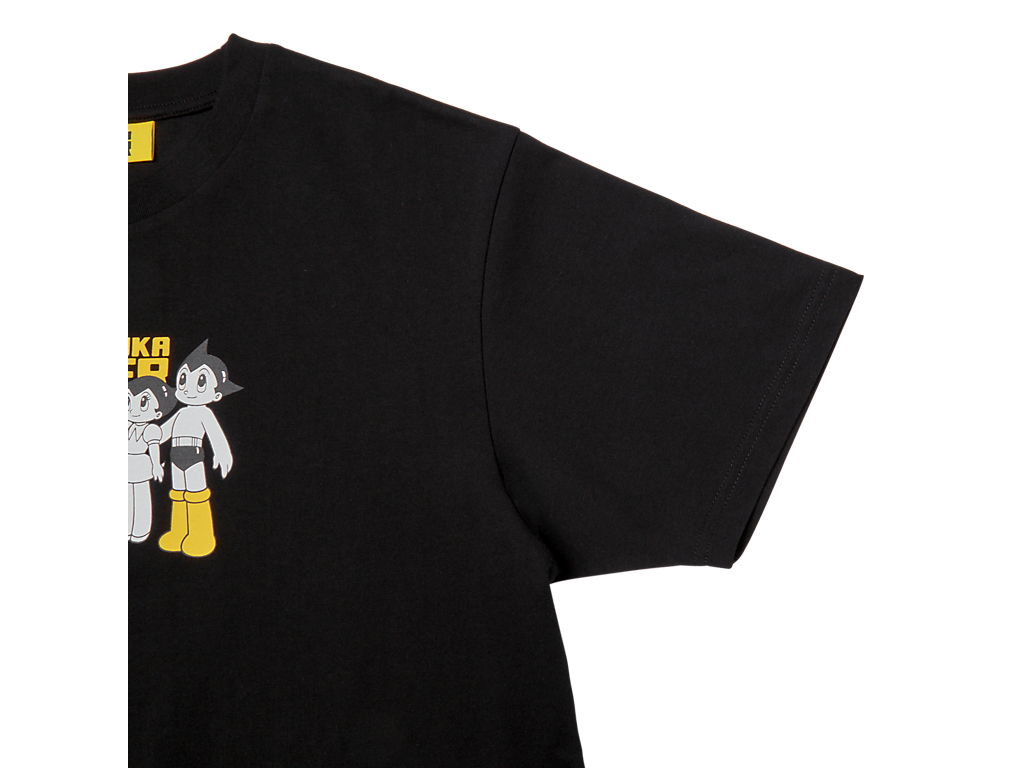 フロントには、タイガーイエローのブーツをまとったアトムと妹ウランが描かれ、ブランドネームと組み合わせたオリジナルプリントが遊び心を演出。