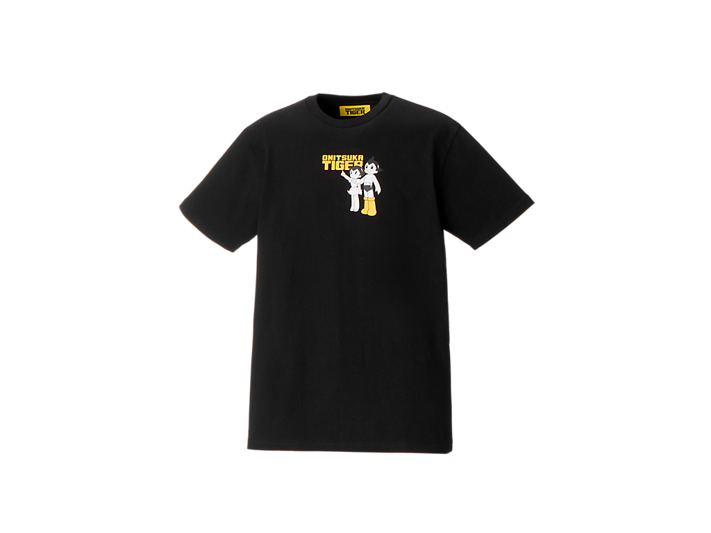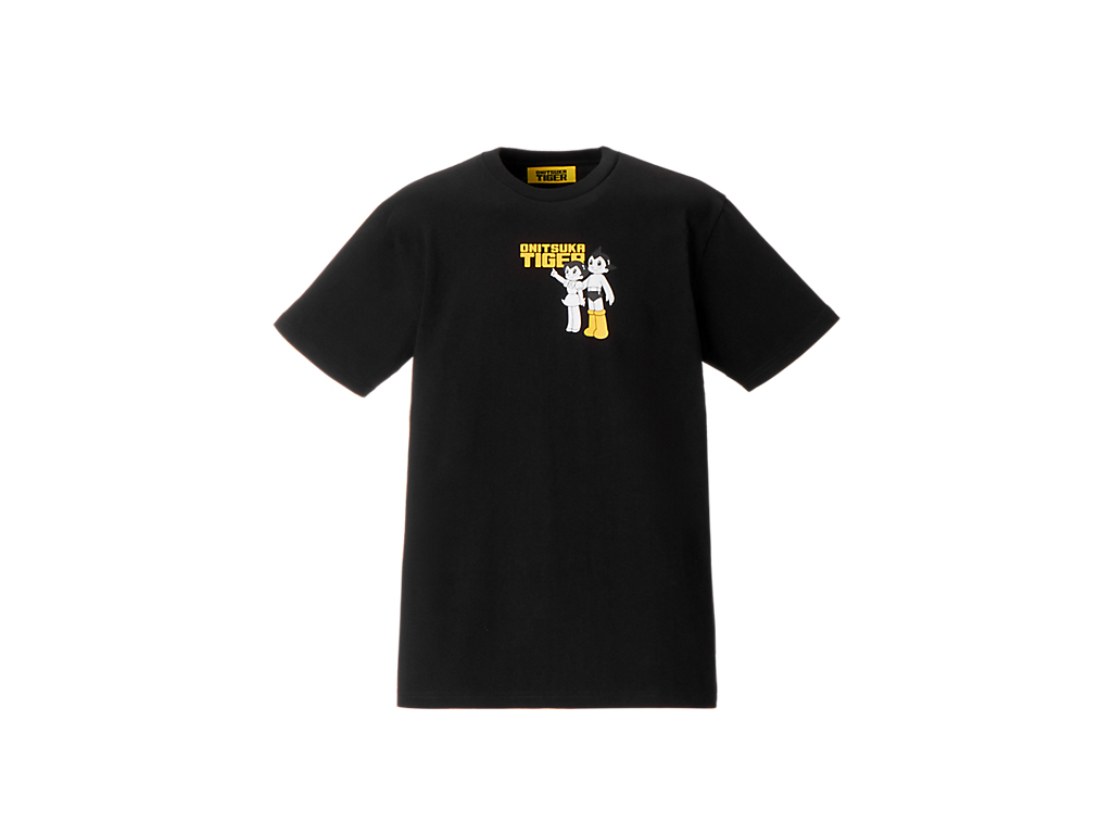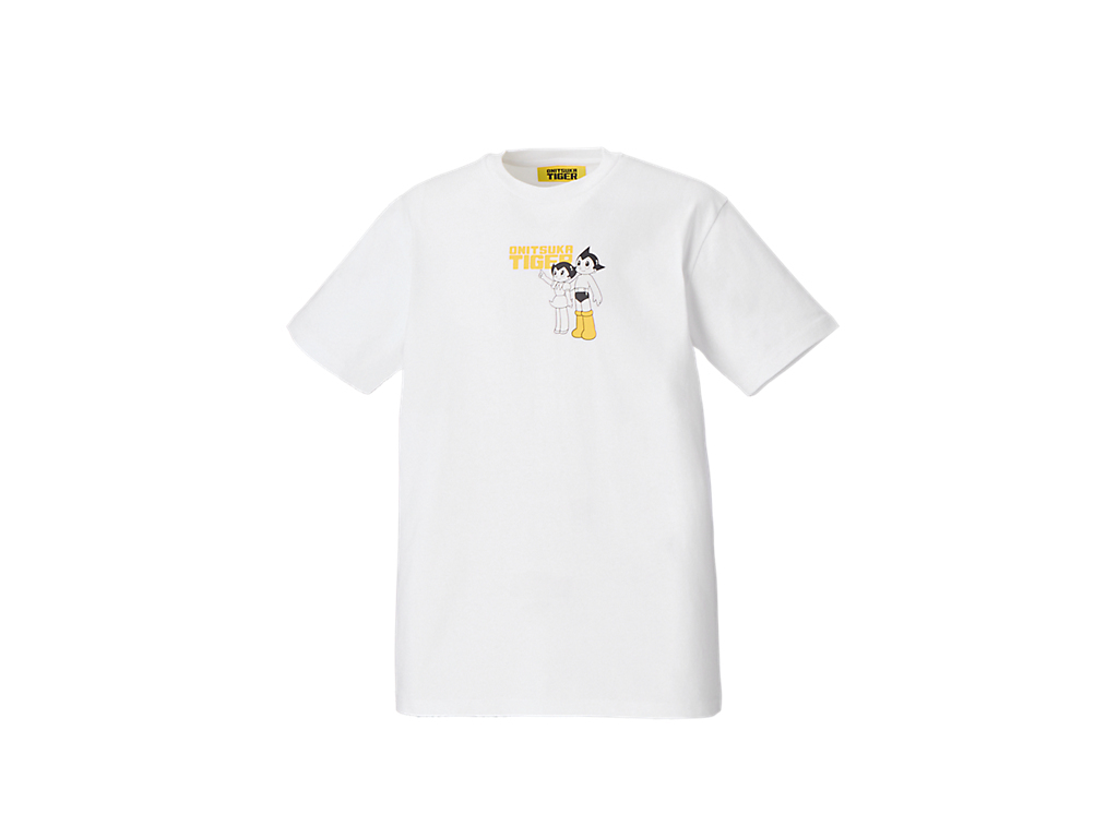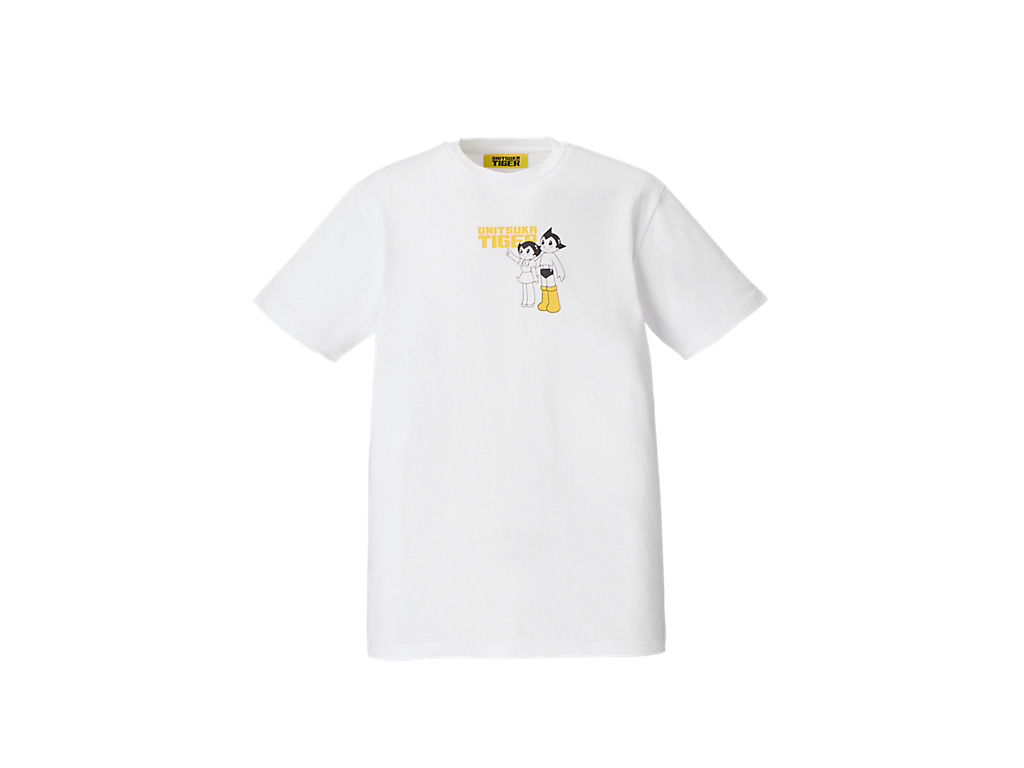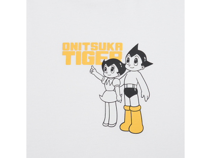 フロントには、タイガーイエローのブーツをまとったアトムと妹ウランが描かれ、ブランドネームと組み合わせたオリジナルプリントが遊び心を演出。