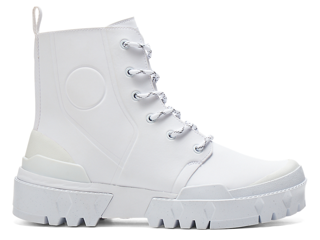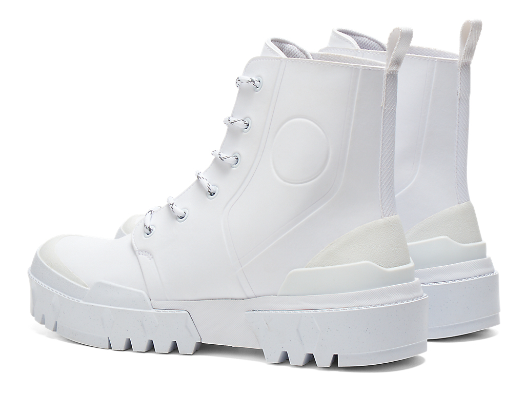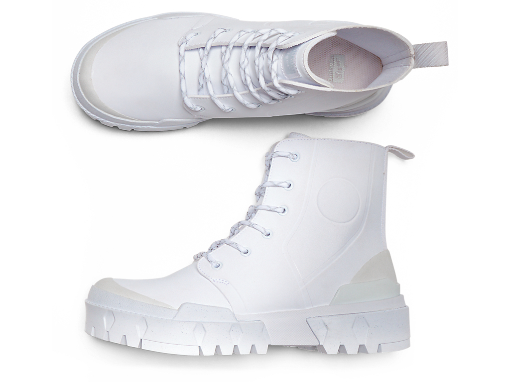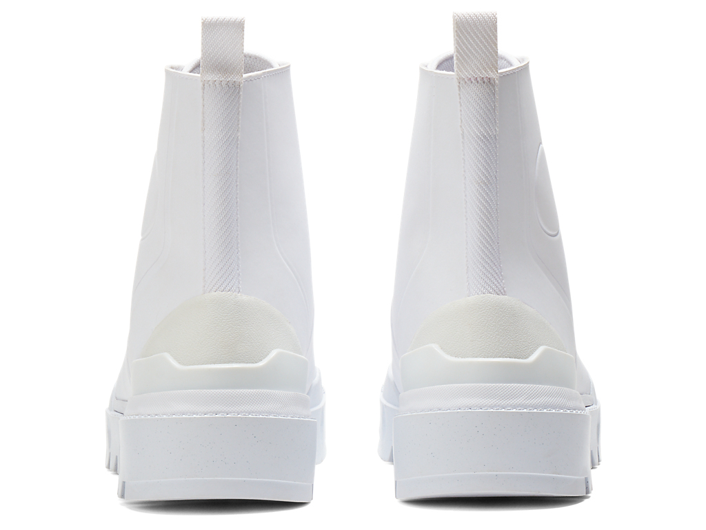 クラシカルなブーツスタイルを、大胆に単色で表現しているのが特徴。シューズの外側に型押しで表現された丸い枠は、1960年代のアーカイブシューズのデザインディテールからインスピレーションを受けている。