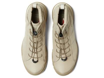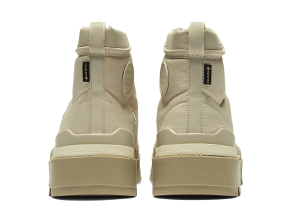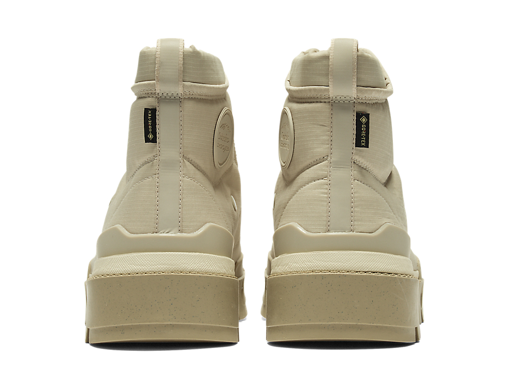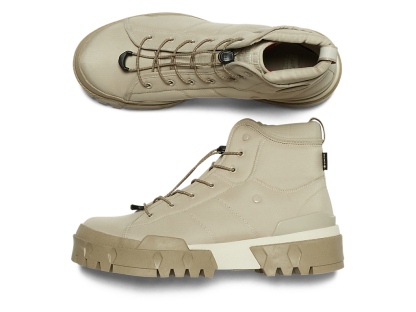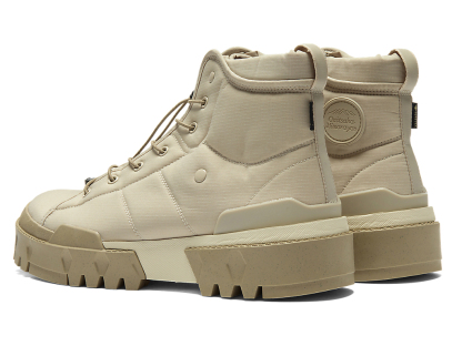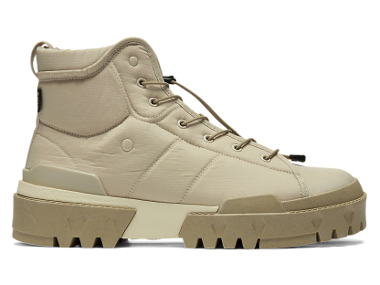 ファッションとアウトドアのエスプリを融合させた、シンプルなアッパーと機能的でラギットなデザインのソールが特徴となっている。また、防水透湿性に優れたゴアテックスファブリクス搭載のアッパー採用により、雨の日も快適に履ける一足となっている。