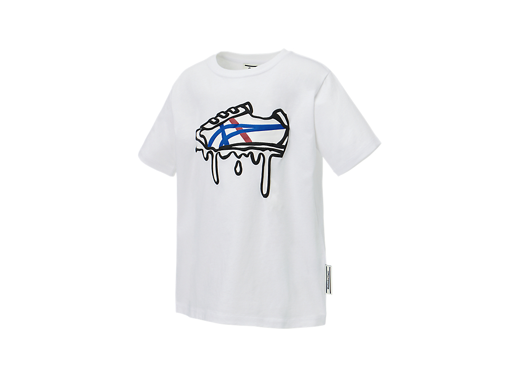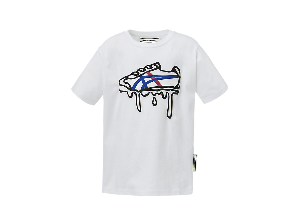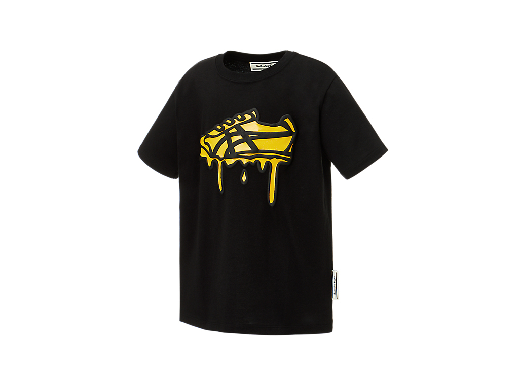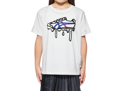 溶け出すシューズがモチーフの半袖TEE。シリコーンプリントで立体感を出し、リアルな溶解感を体感できるようなデザイン。