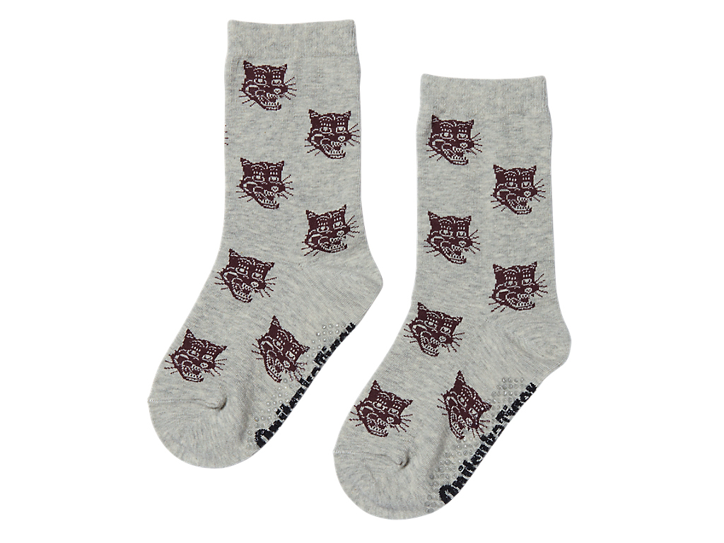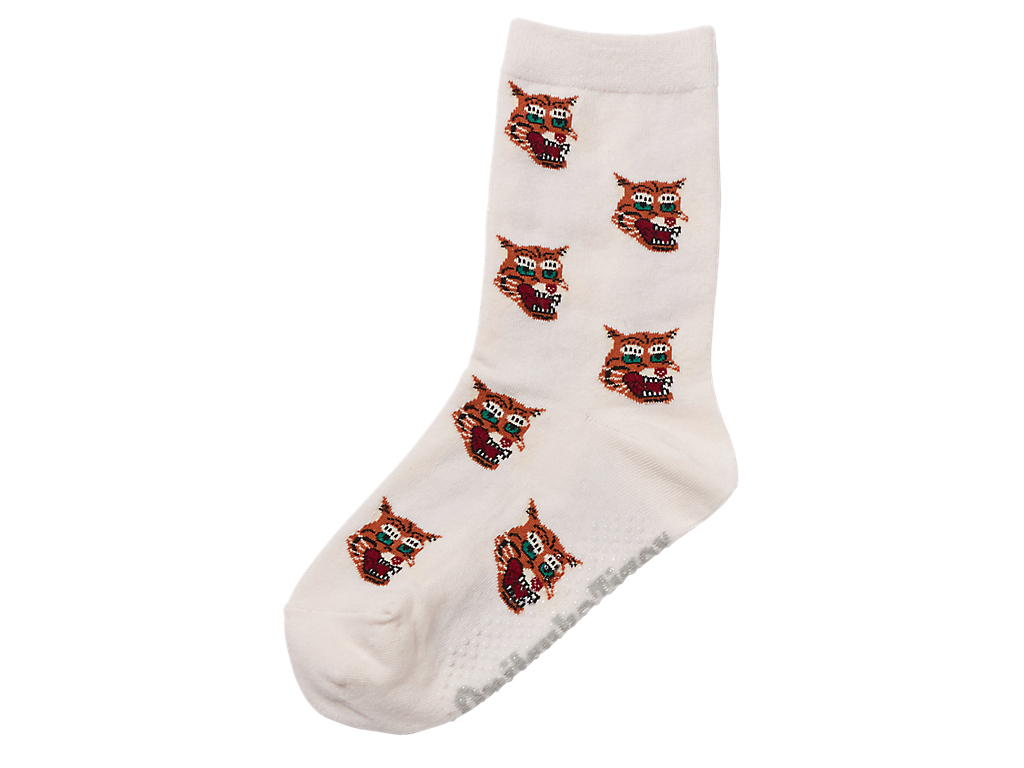 ブランドオリジナルの虎モチーフの中でも人気のデザインを大胆に総柄で表現したミドルソックス(キッズタイプ)。