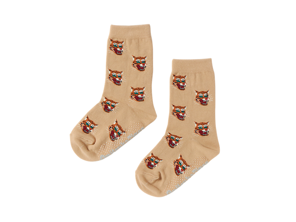 ユニークな虎がコーデに遊びをプラス。足裏に滑り止め付き。