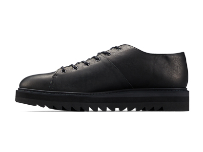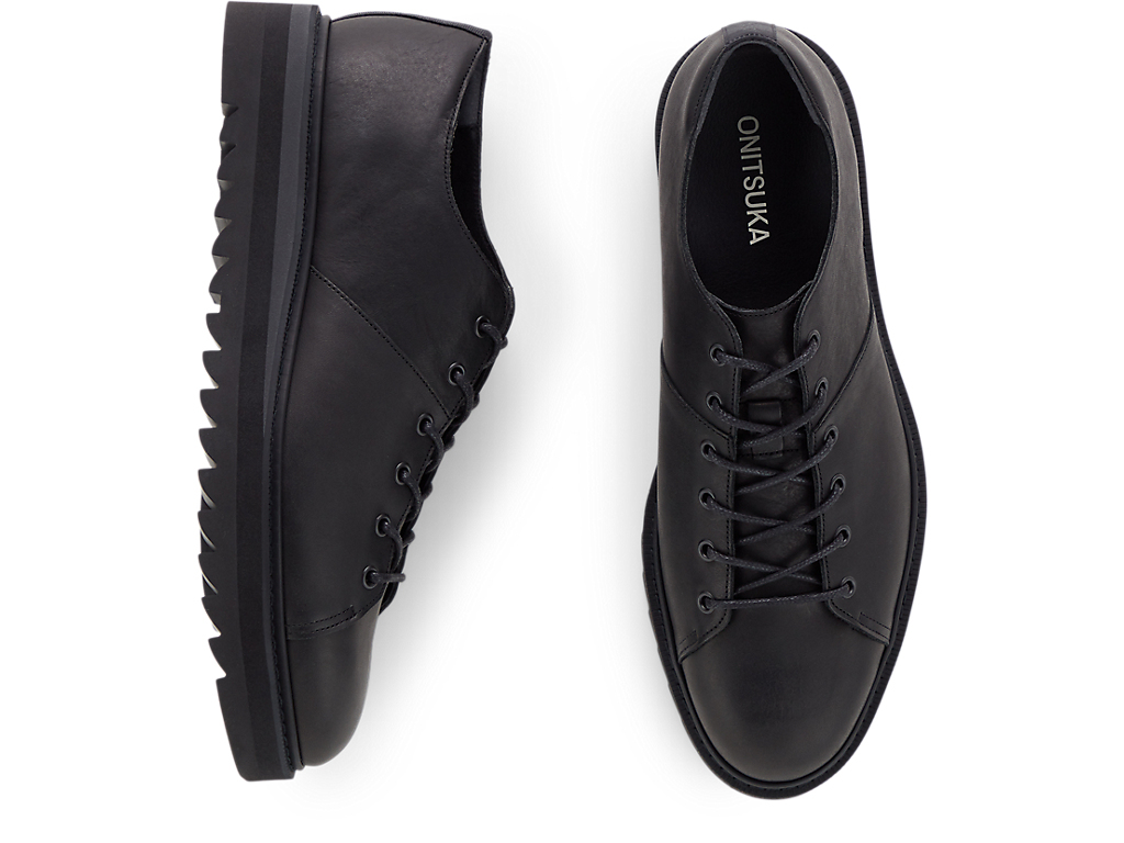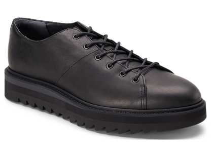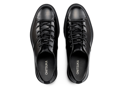 1950年代のクラシックなバスケットボールシューズをミニマルにリデザインしたローカットシューズ。アッパーには世界的なブランドである"神戸牛"の革を日本の代表的な 皮革産地である姫路で、日本の職人の伝統技術によって仕上げた国産のレザーを使用。また、ソールのかかと部分にはαGEL Foamを搭載し、衝撃緩衝性を高めている。インナーソールは、硬さの異なるフォーム材を組み合わせた設計によりクッション性を保ちつつ、アーチの沈み込みやかかとのぐらつきを軽減するサポート性を付加している。アウターソールには、耐久性とクッション性を併せもつラバースポンジを採用。過去のアーカイブのトレーニングシューズに使われていたソールのデザインをベースに、厚みのあるシャークソールで、踏み付け部とかかと部に円形の意匠を配置している。