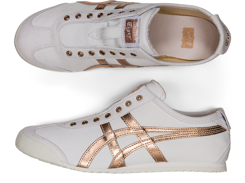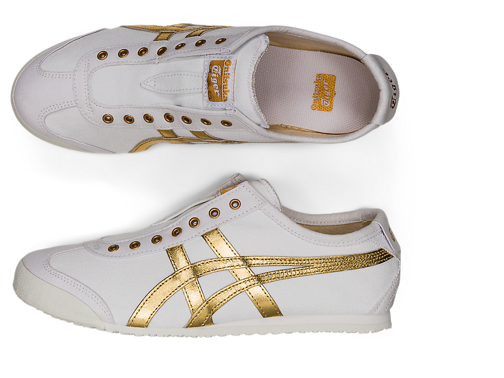 オニツカタイガーのアイコンアイテム「MEXICO 66」のデザインはそのままに、キャンバス素材をまとってスリッポンスタイルにアレンジしたモデル。