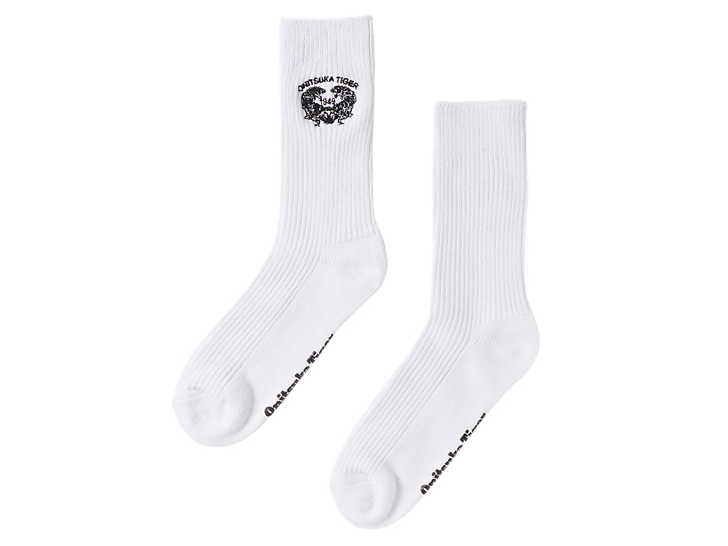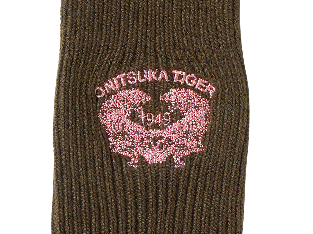 2体組み合わせた見返り虎のグラフィックがポイントのミドルソックス。足元にアクセントを持たせて、コーディネートを楽しめる一足。
