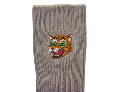 オリジナルの虎モチーフをワンポイントで配置し、遊び心のある表情を演出したミドルソックス。