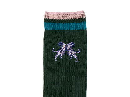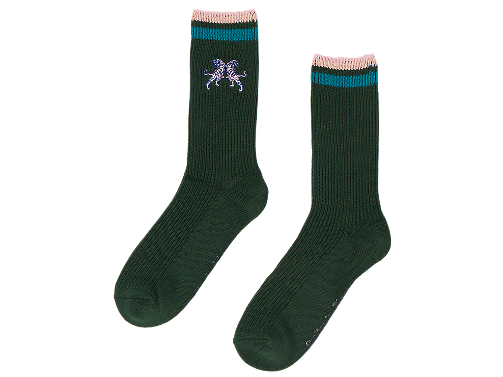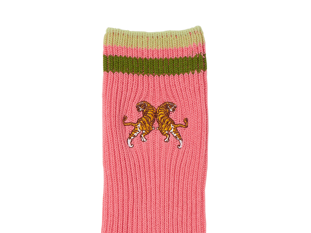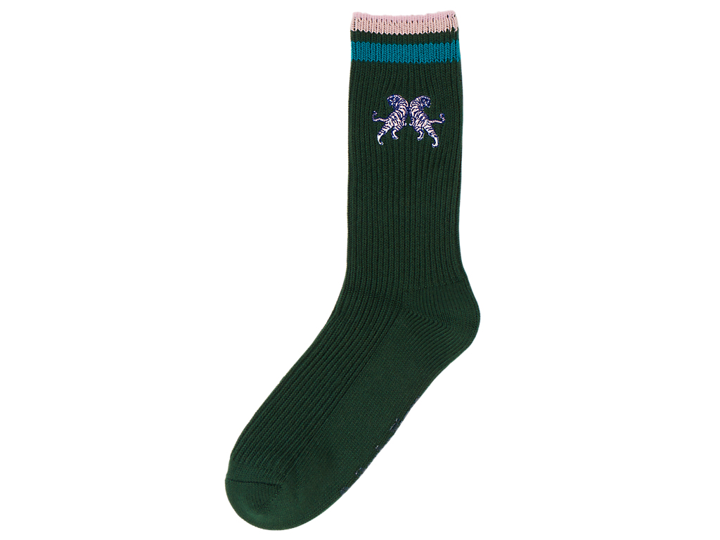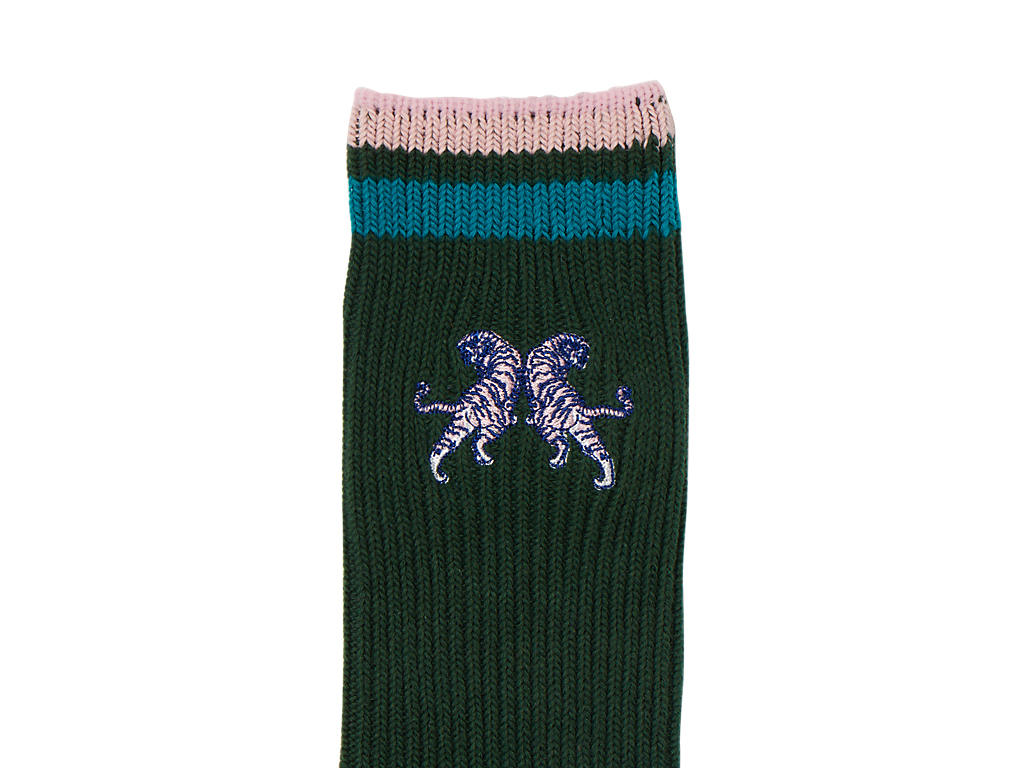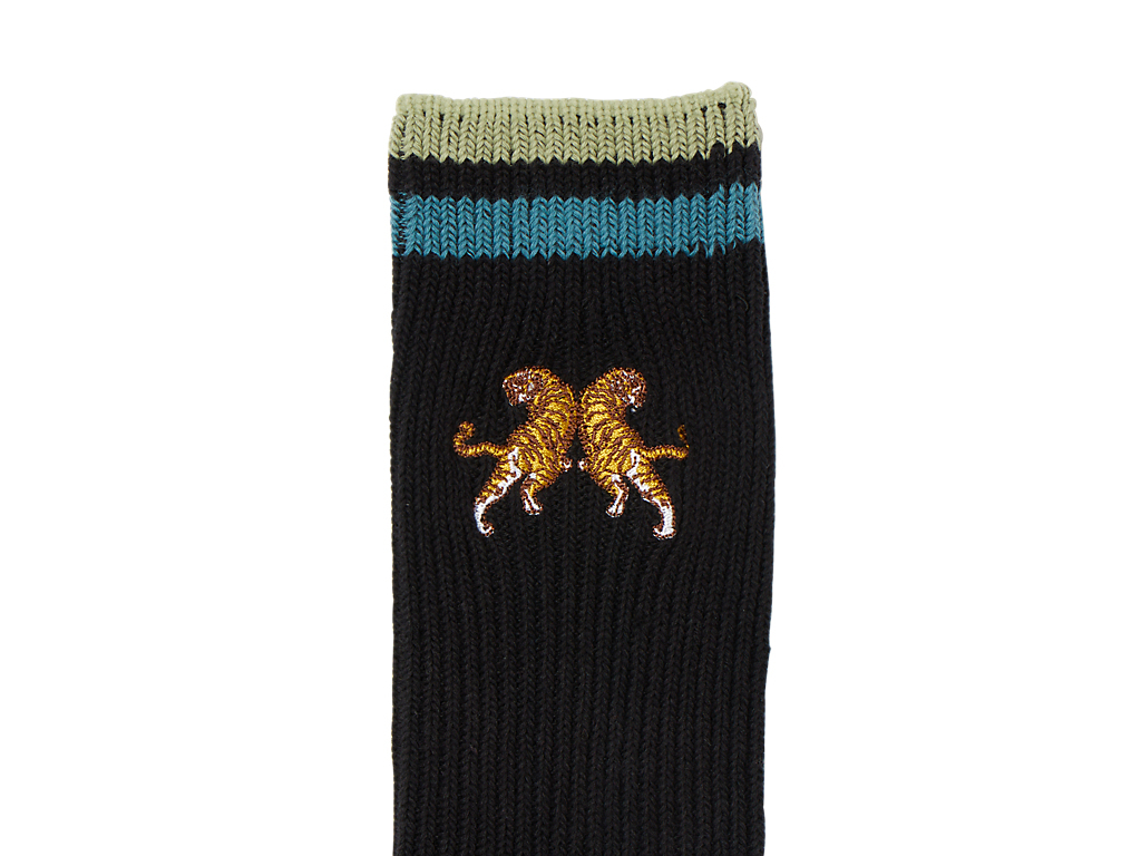 このミドルソックスは、トラのグラフィックが刺繍でデザインされており、足元にユニークなアクセントを添えます。