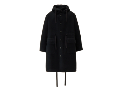 シンプルでエレガントなデザインは、無地のシックな表情で高級感を漂わせます。サイズ調整が可能なフード、ウエスト、裾には総針テープを採用し、細部までこだわり抜いた作りを実感いただけます。また、水牛ボタンや袖口の本切羽が、さらなる上質感を引き立てます。