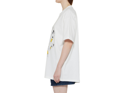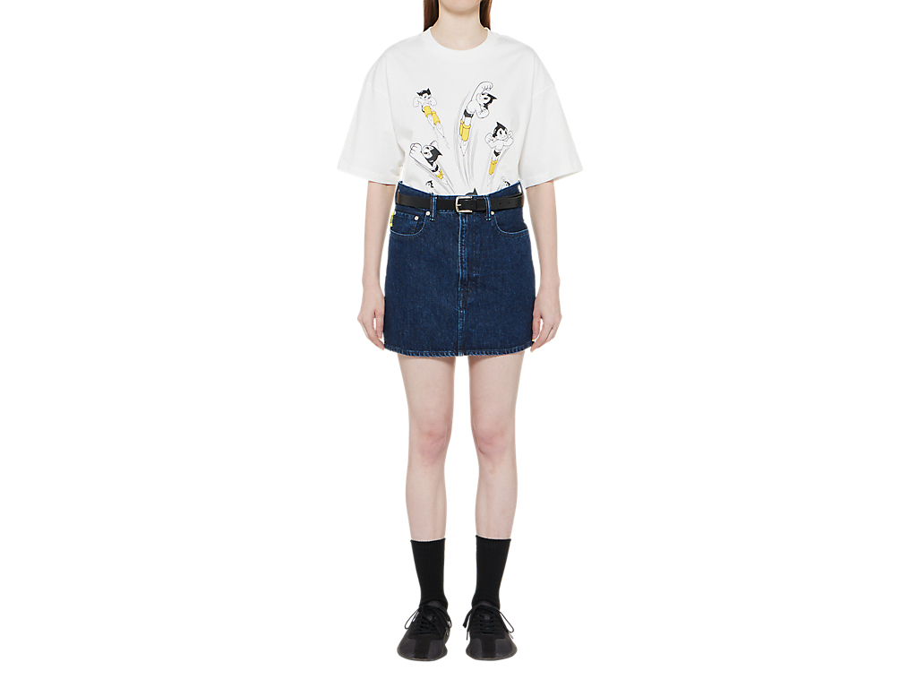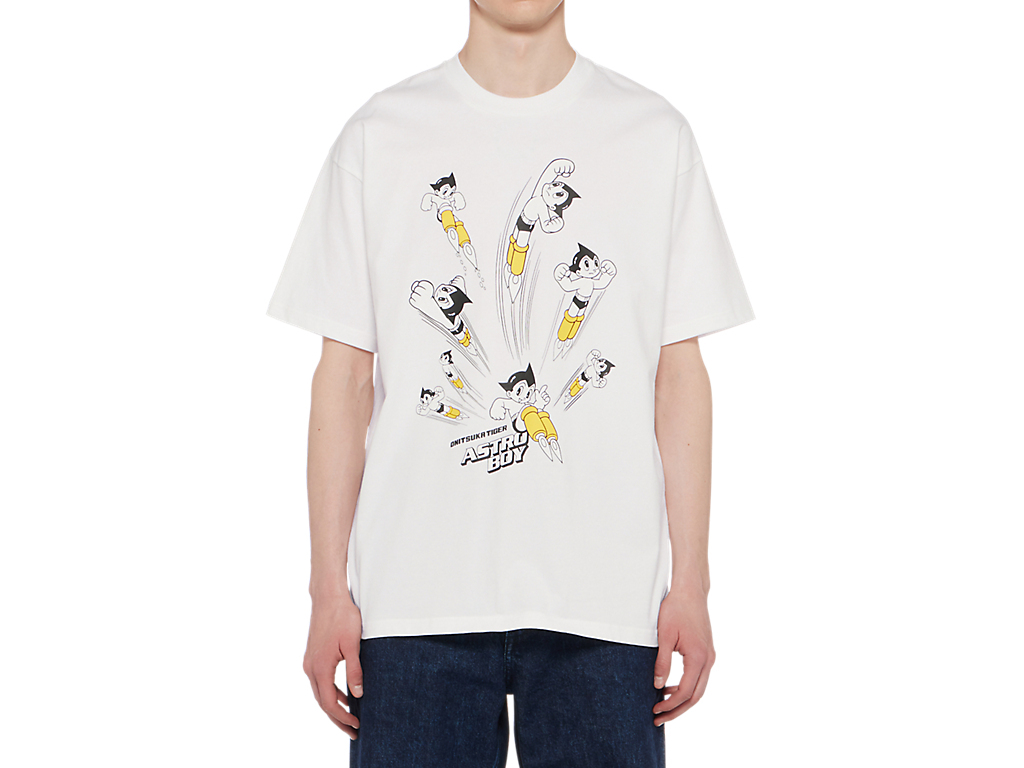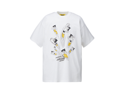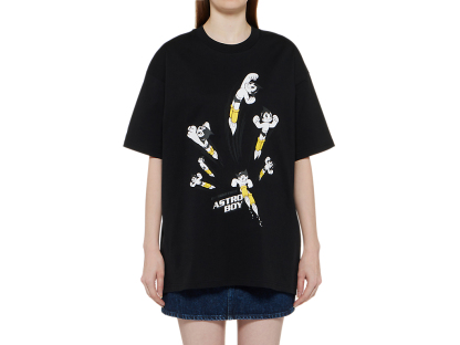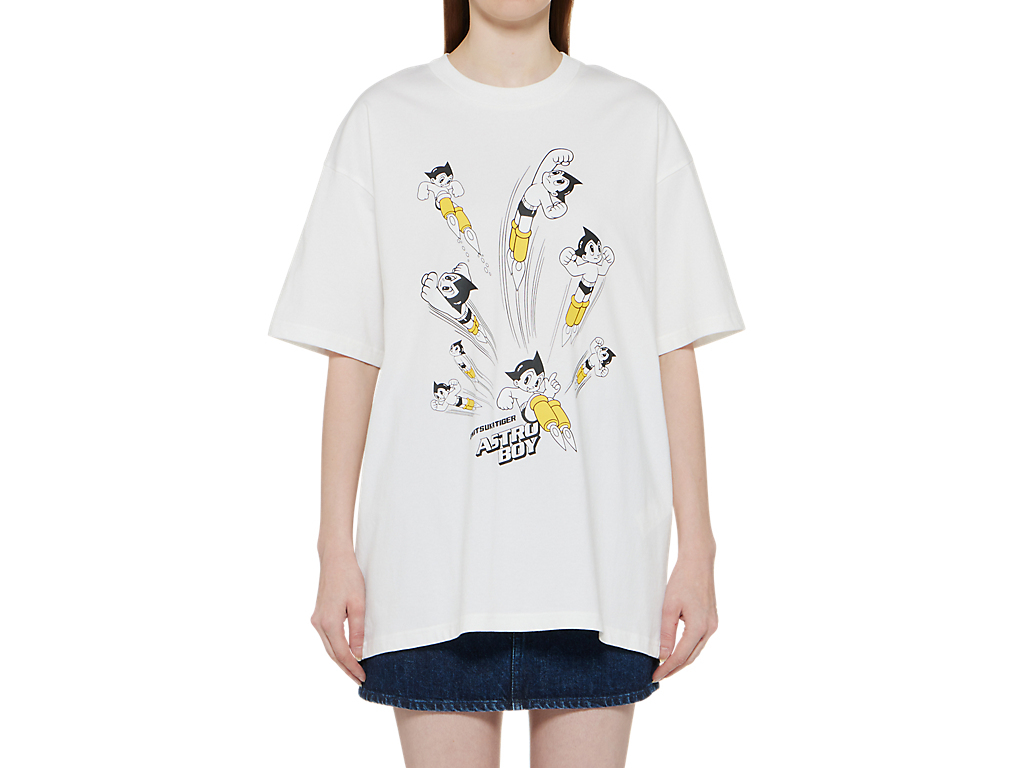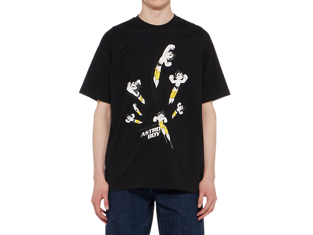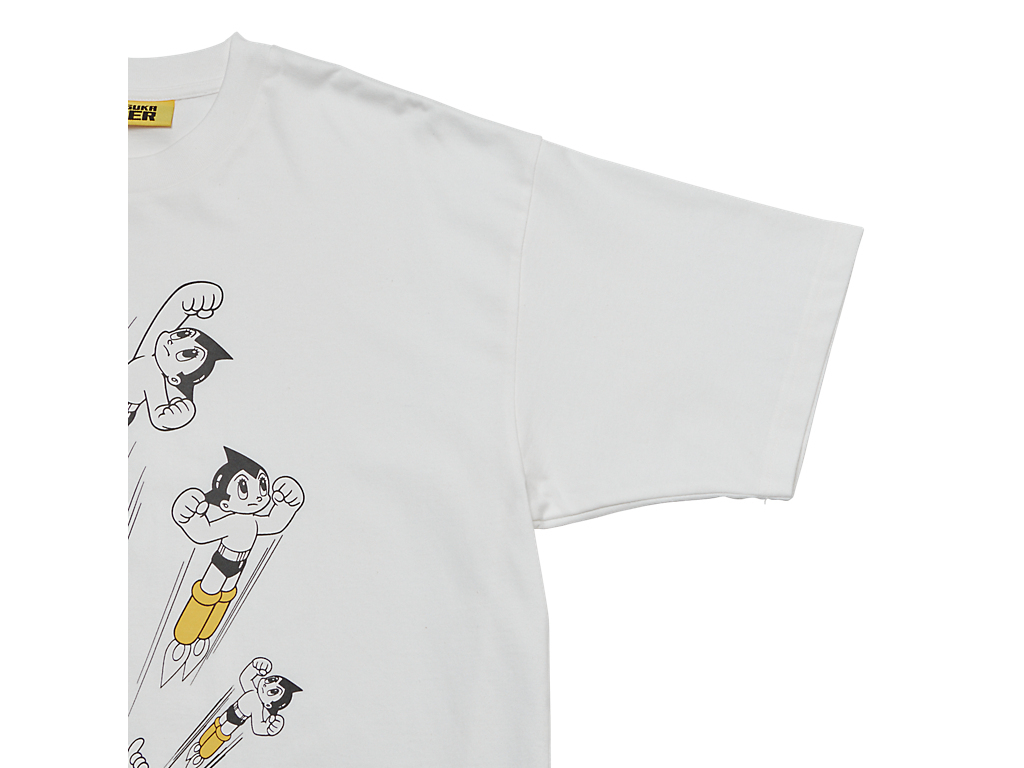 フロントには鉄腕アトムとブランドロゴを組み合わせたプリントが施された、遊び心とデザイン性を兼ね備えたTシャツ。
