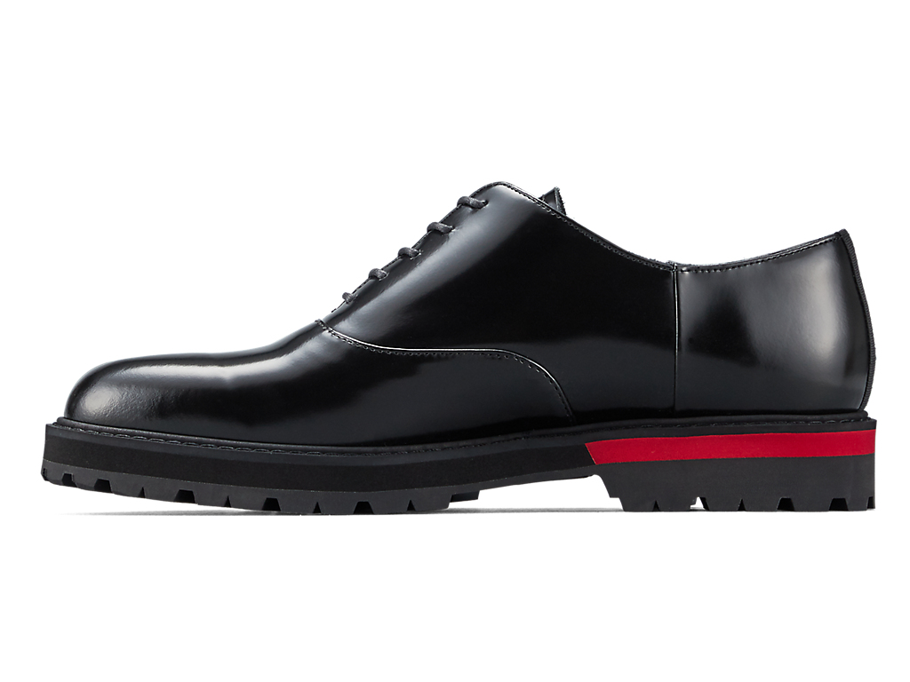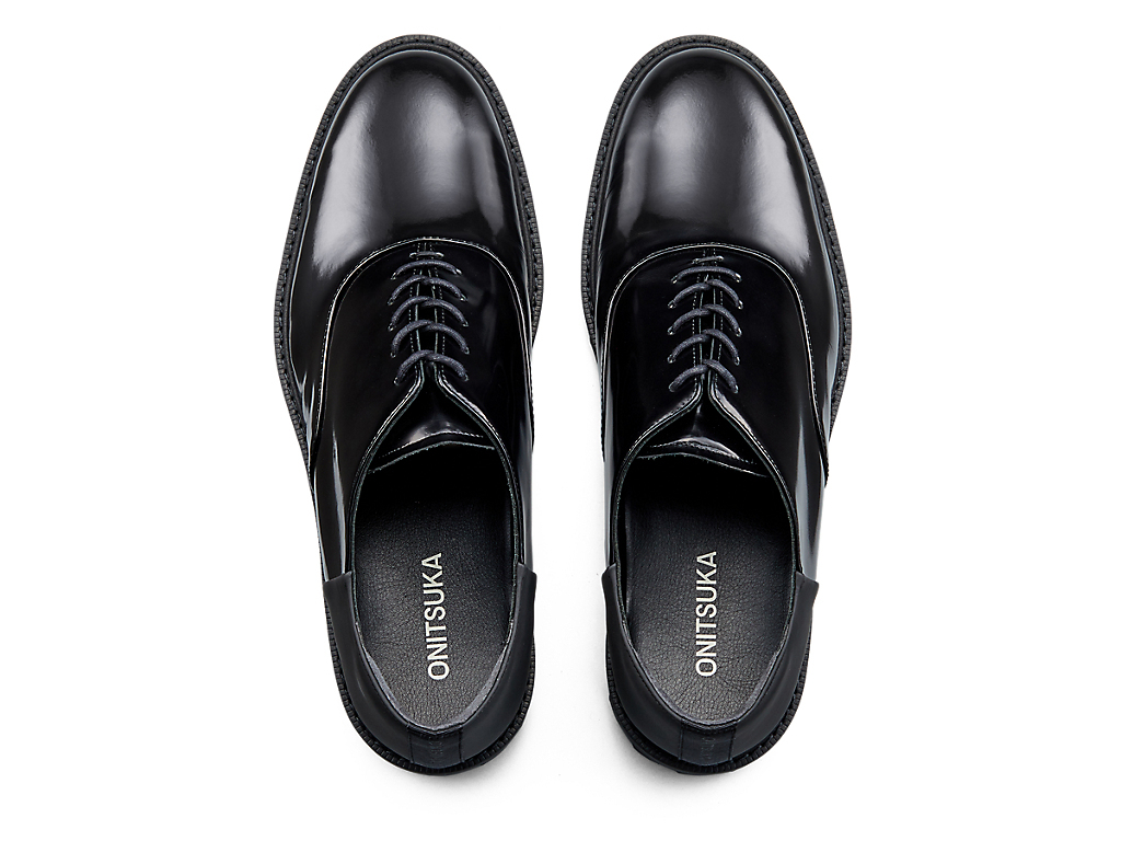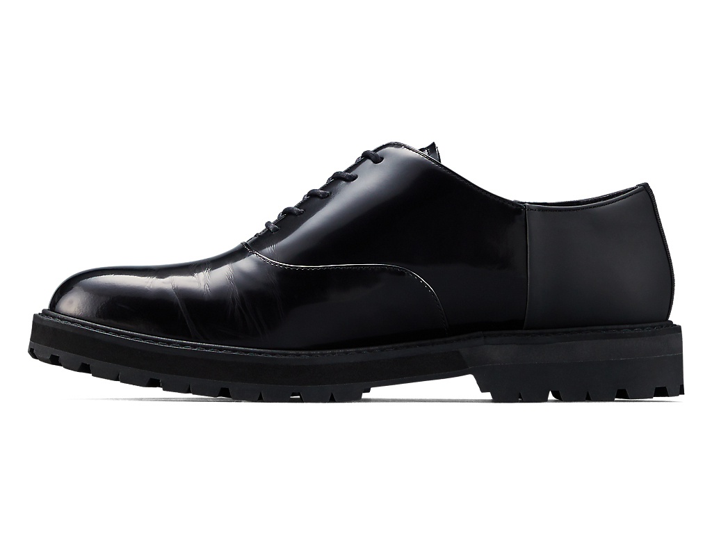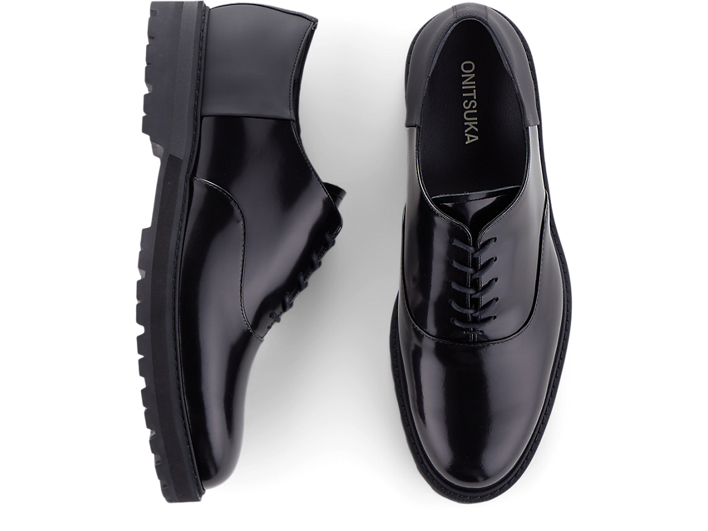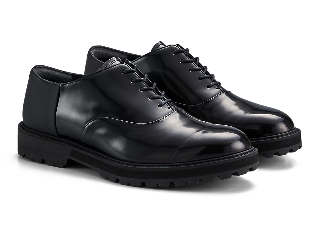 内羽根式のドレッシーなデザインに甲ゴムを追加しフィット性を高めたオックスフォードシューズ。アッパーには国産のレザーを使用。また、ソールのかかと部分にはαGEL Foamを搭載し、衝撃緩衝性を高めている。インナーソールは、硬さの異なるフォーム材を組み合わせた設計によりクッション性を保ちつつ、アーチの沈み込みやかかとのぐらつきを軽減するサポート性を付加している。ラギッドなアウターソールを搭載した重厚感のある雰囲気。