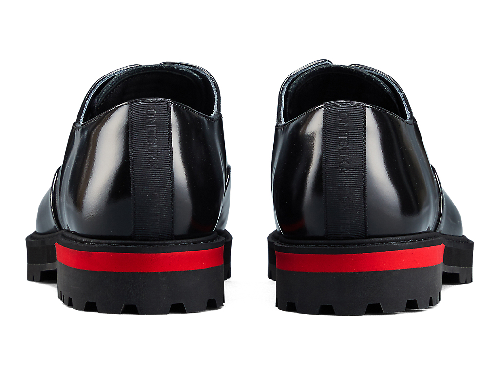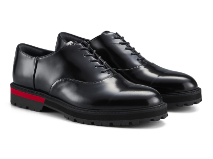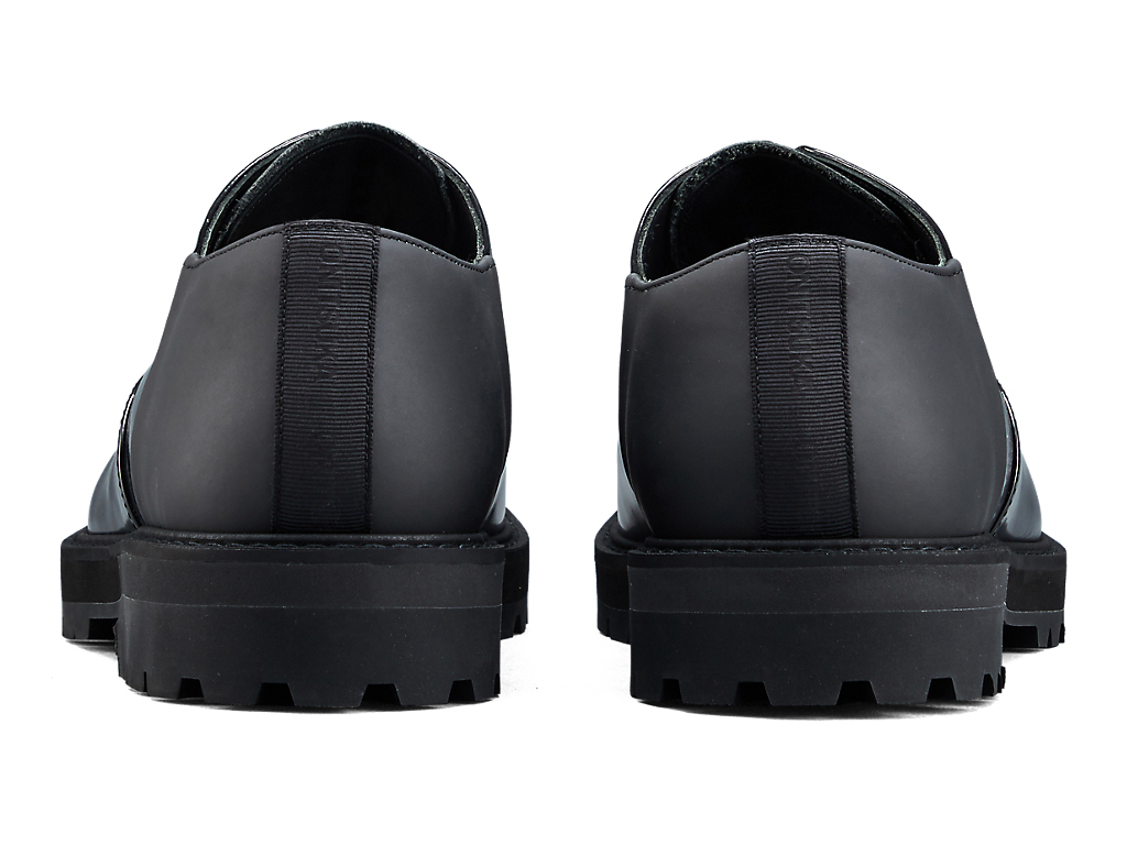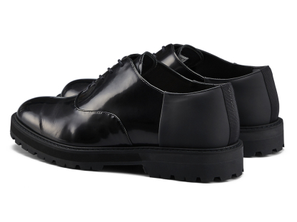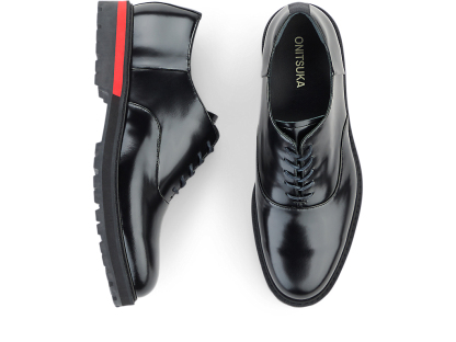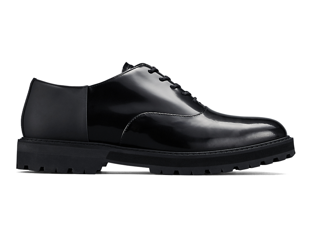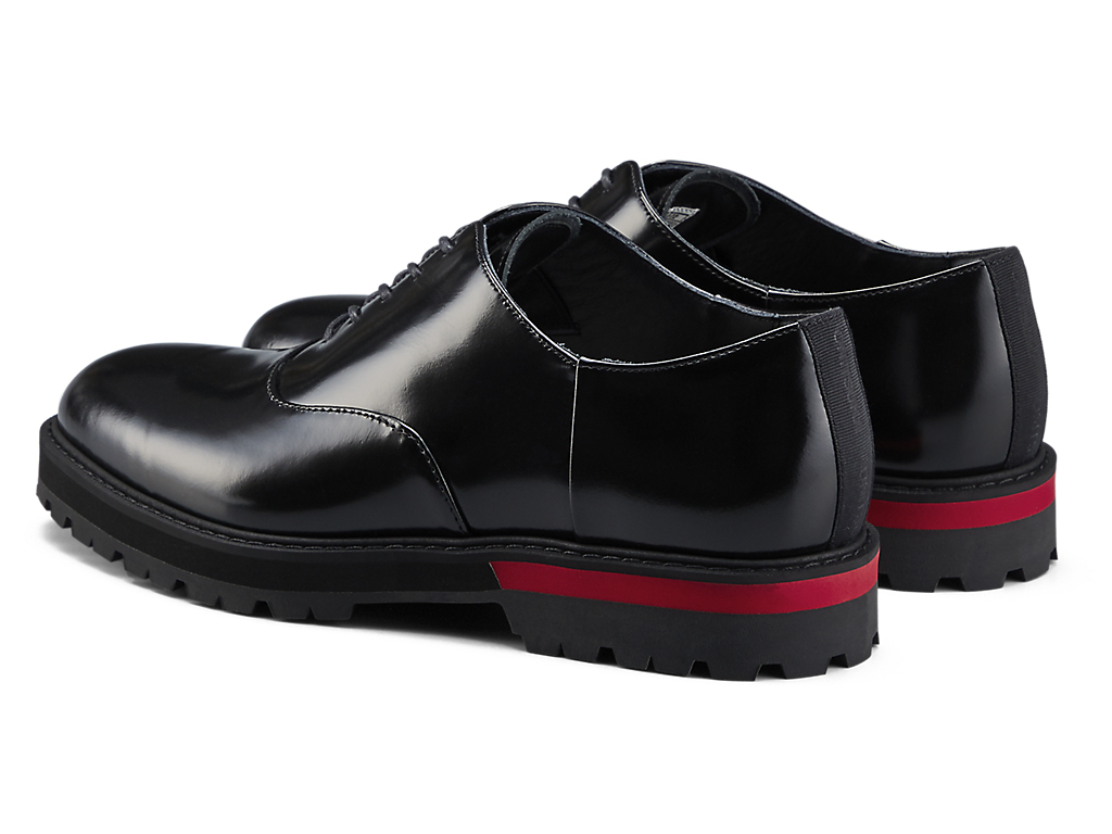 内羽根式のドレッシーなデザインに甲ゴムを追加しフィット性を高めたオックスフォードシューズ。アッパーには国産のレザーを使用。また、ソールのかかと部分にはαGEL Foamを搭載し、衝撃緩衝性を高めている。インナーソールは、硬さの異なるフォーム材を組み合わせた設計によりクッション性を保ちつつ、アーチの沈み込みやかかとのぐらつきを軽減するサポート性を付加している。ラギッドなアウターソールを搭載した重厚感のある雰囲気。