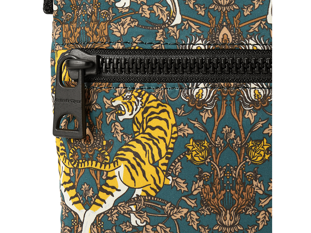 2体組み合わせた見返り虎のグラフィックとブランド創設者である鬼塚喜八郎の「八」をイメージしたグラフィックを交互に配している。また、「虎の尾」とも呼ばれるサンスベリアの花をモチーフにした花柄もデザインし、オニツカタイガーのバックグラウンドを柄に落とし込んだストーリー性のあるグラフィックになっている。