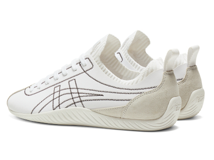 ニット素材で足を包み込み、上質なスエードとマットな質感の素材を組み合わせたパネル仕立て。