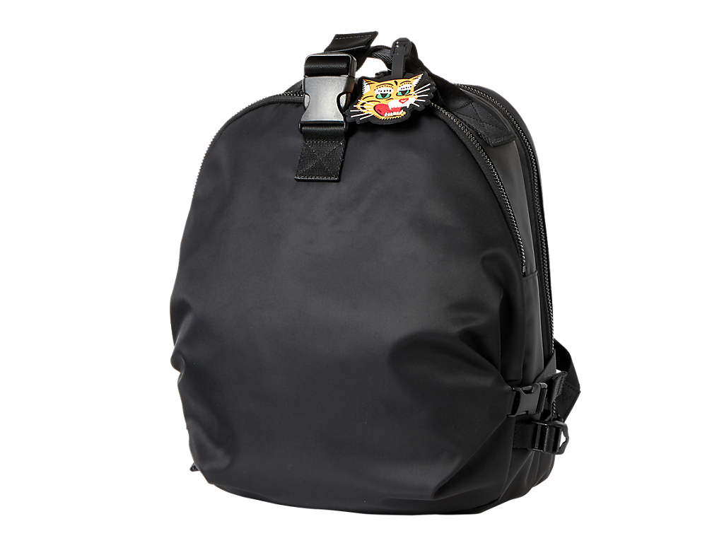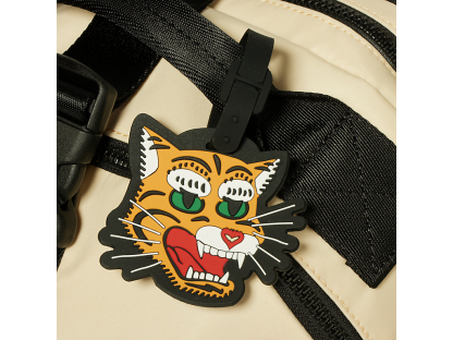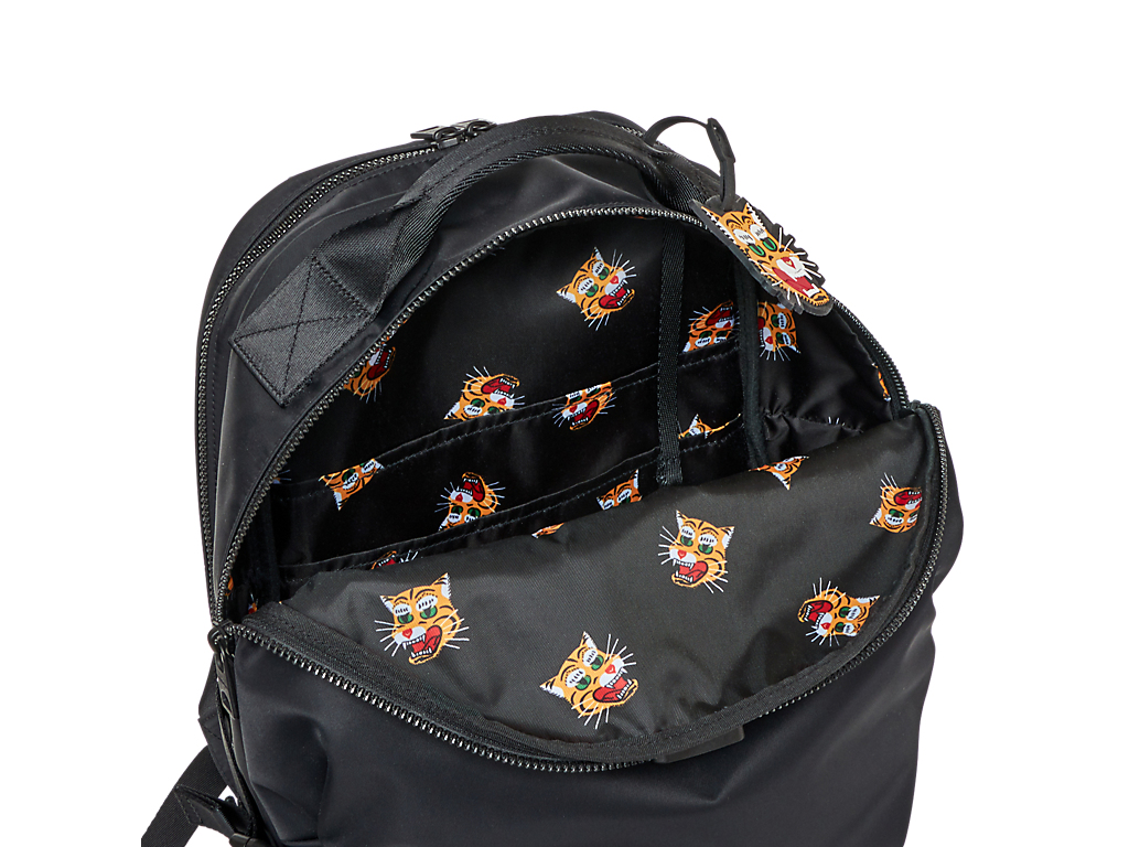 ディテールはそのままに、サイズだけコンパクト化。さらに、裏地を虎の総柄プリント生地にアップデートした。総柄と同じ虎モチーフのシリコーンチャームが付き、シンプルなバックパックのアクセントになっている。