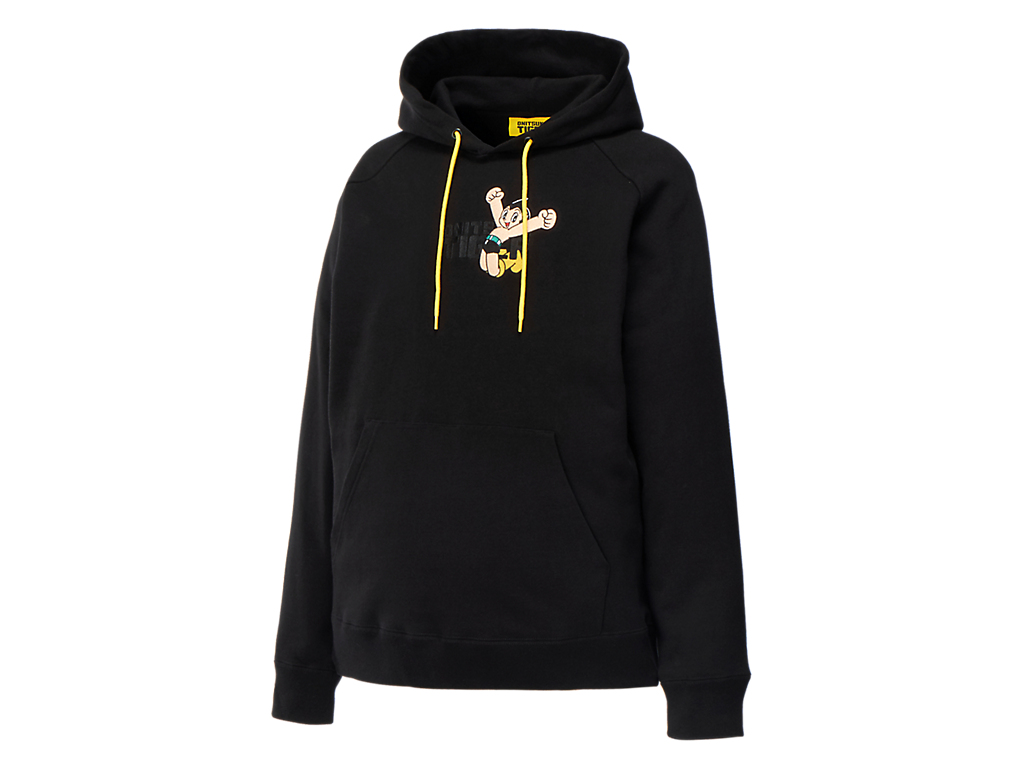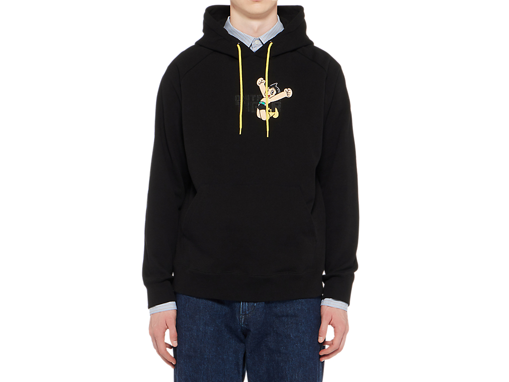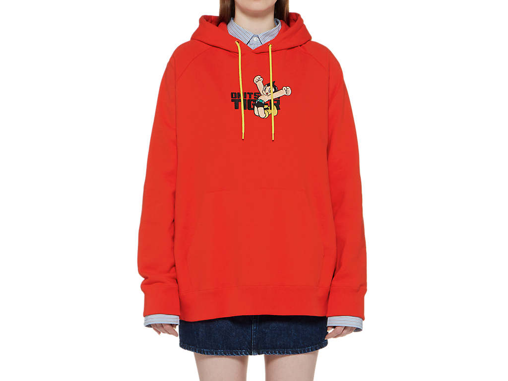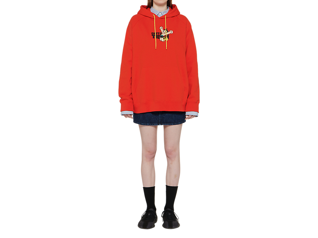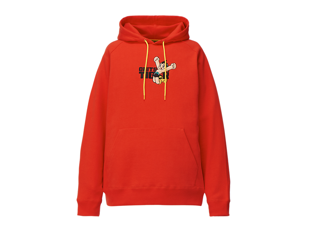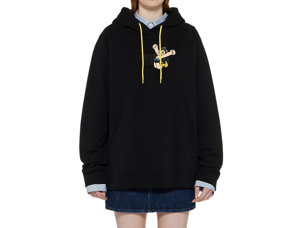 胸元には鉄腕アトム™とブランドロゴの刺繍が施され、カジュアルながら上品な印象に。鉄腕アトムの赤いブーツがタイガーイエローに変身し、フードのひもとともに、ボディカラーに華やかなアクセントをプラス。