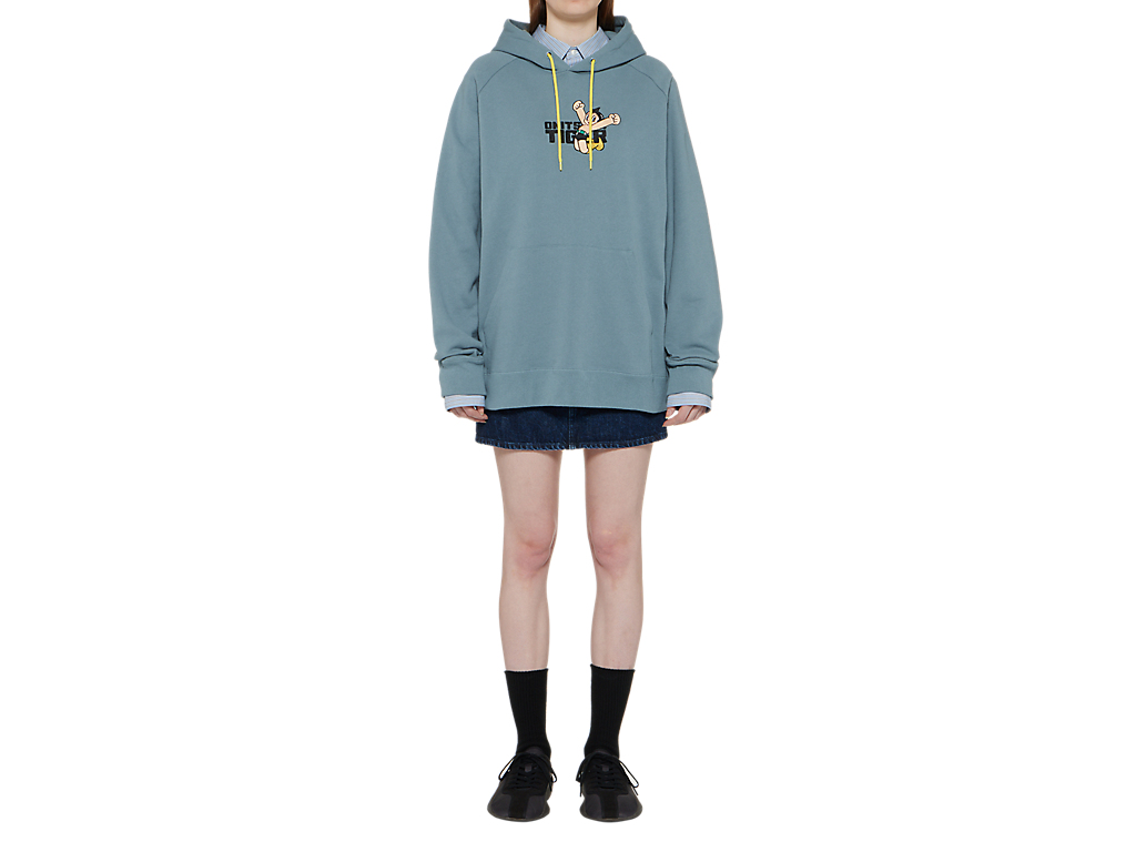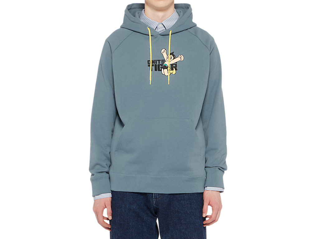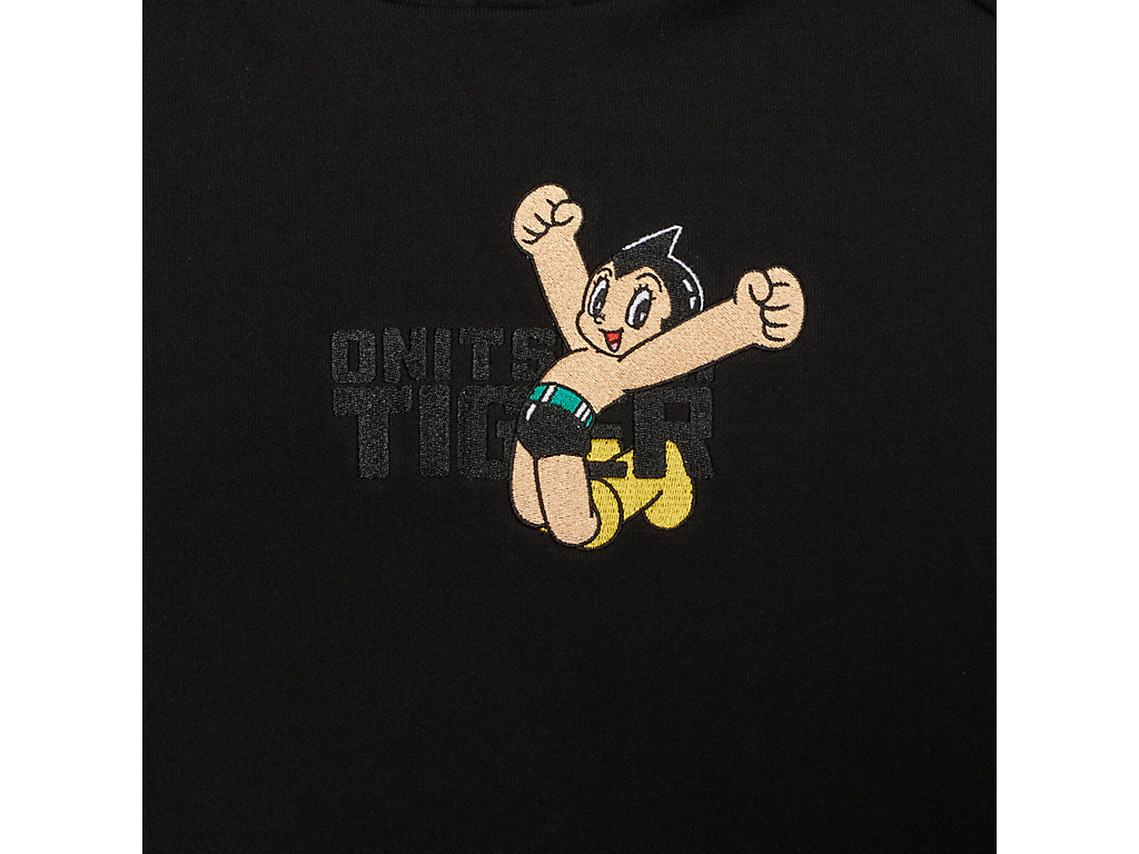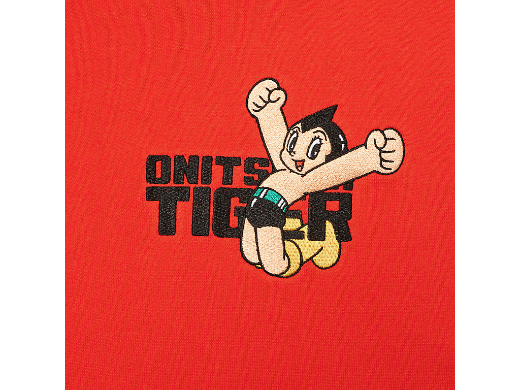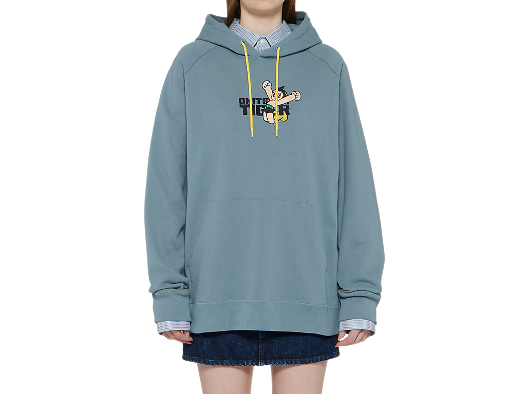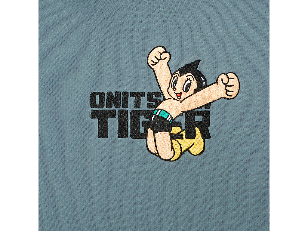 胸元には鉄腕アトム™とブランドロゴの刺繍が施され、カジュアルながら上品な印象に。鉄腕アトムの赤いブーツがタイガーイエローに変身し、フードのひもとともに、ボディカラーに華やかなアクセントをプラス。