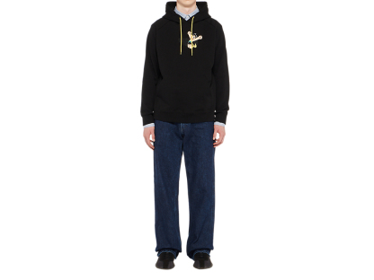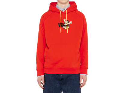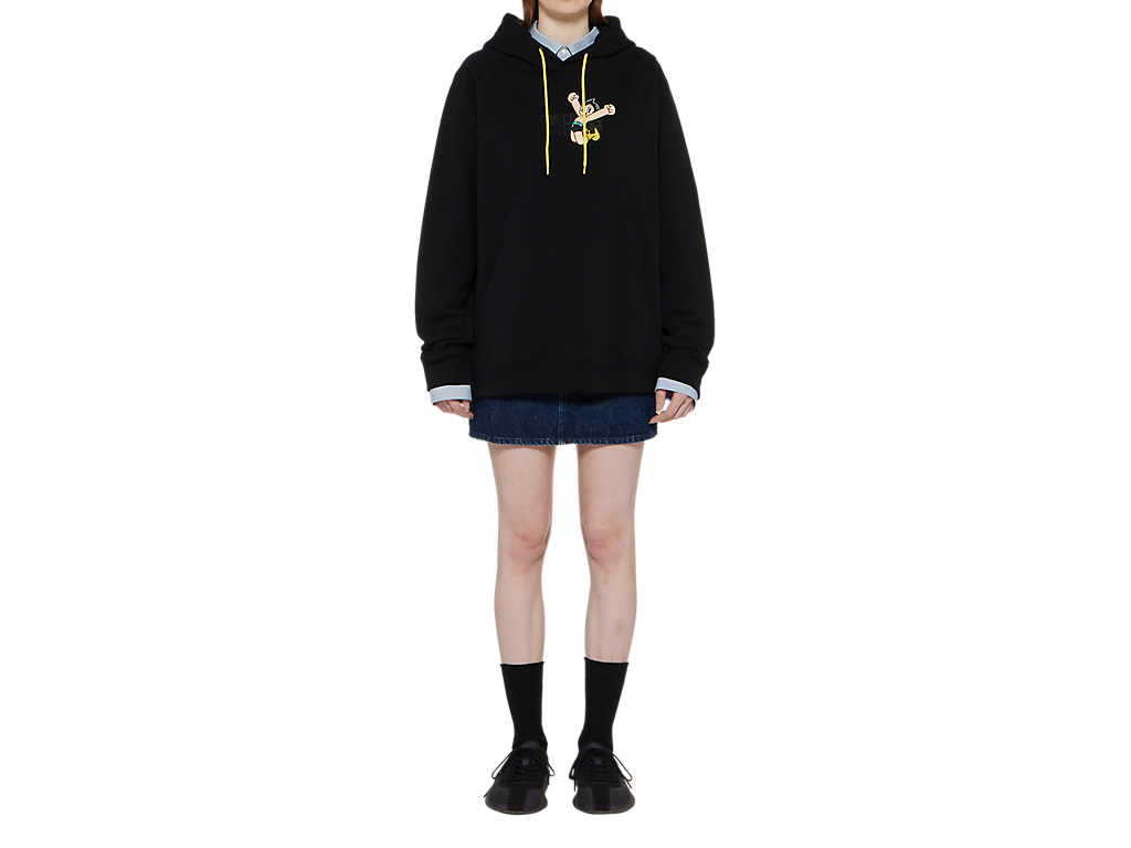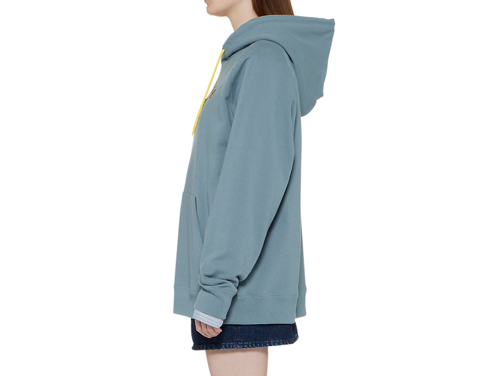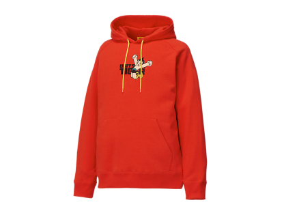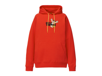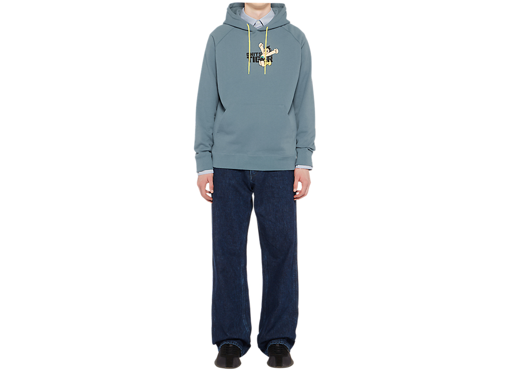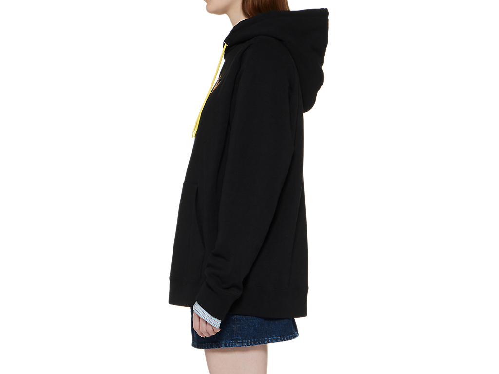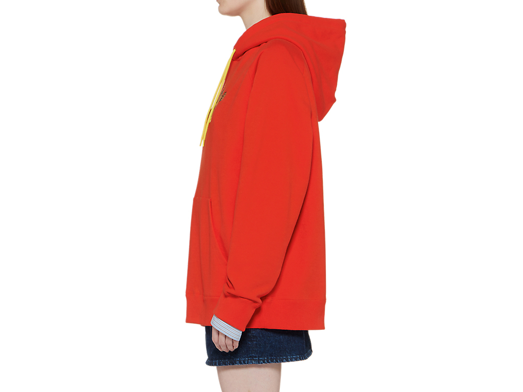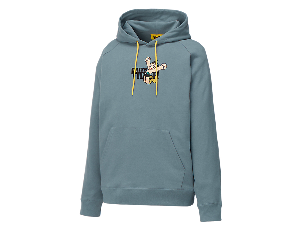 胸元には鉄腕アトム™とブランドロゴの刺繍が施され、カジュアルながら上品な印象に。鉄腕アトムの赤いブーツがタイガーイエローに変身し、フードのひもとともに、ボディカラーに華やかなアクセントをプラス。