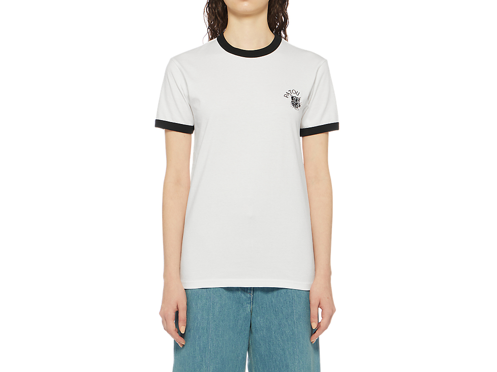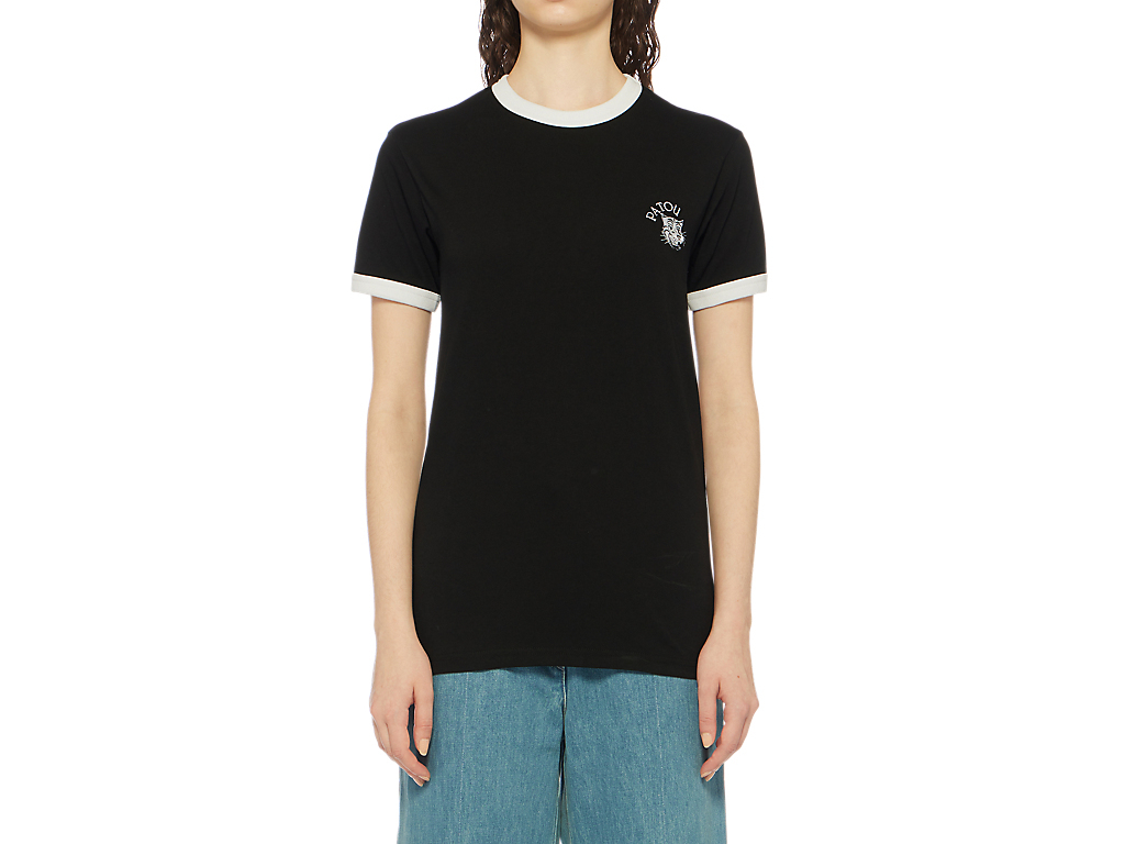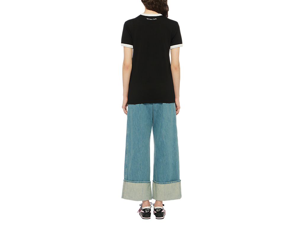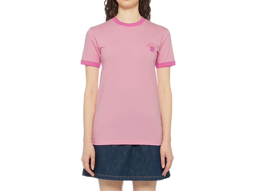 T-SHIRTは、パトゥが定番のリンガーTシャツを新たな視点で再解釈し、ビンテージ感と現代的な要素を巧みに融合させた一着です。