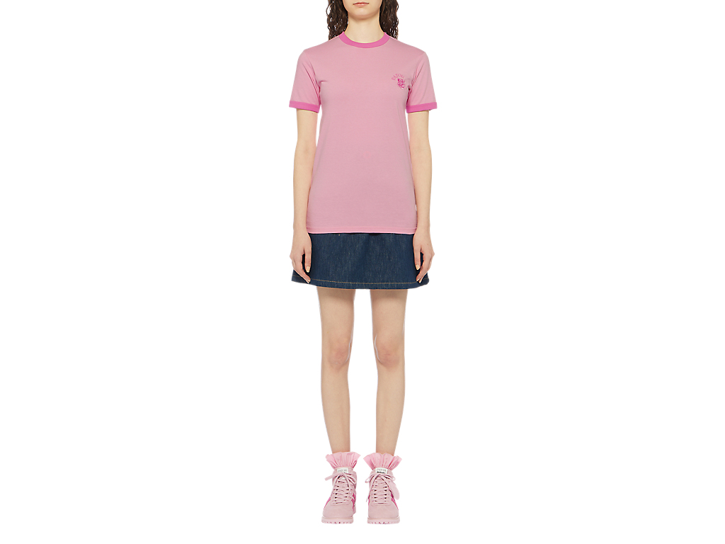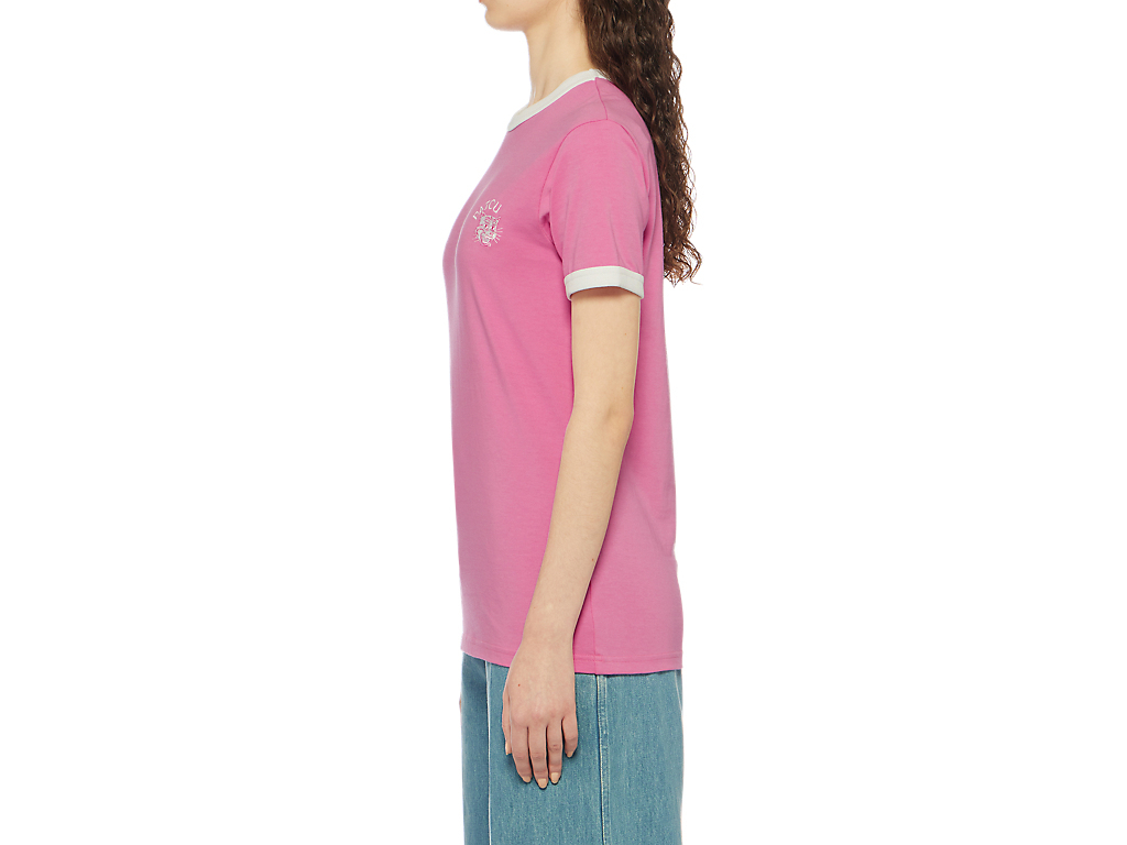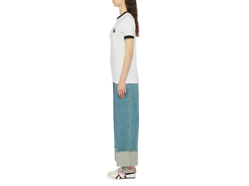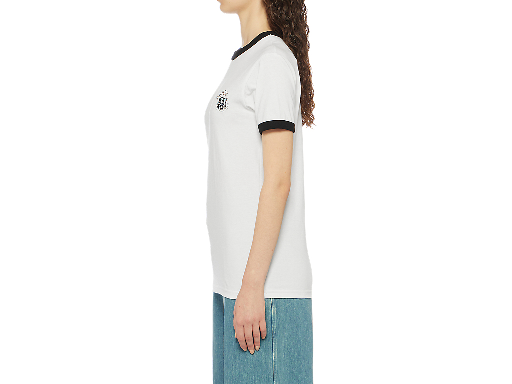 T-SHIRTは、パトゥが定番のリンガーTシャツを新たな視点で再解釈し、ビンテージ感と現代的な要素を巧みに融合させた一着です。