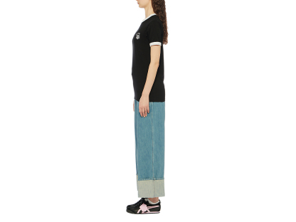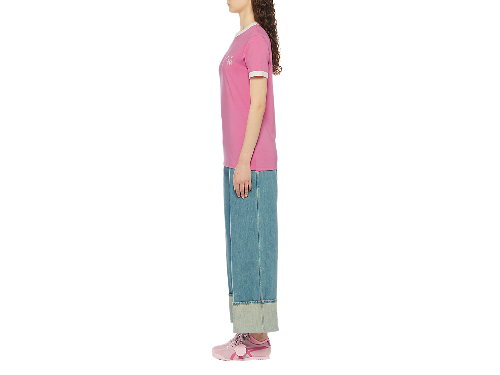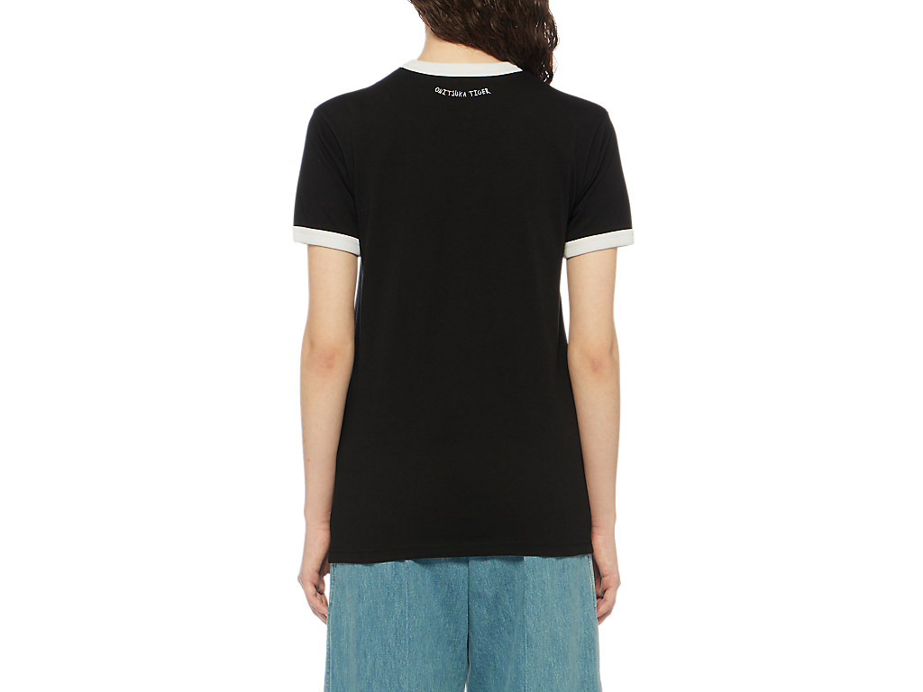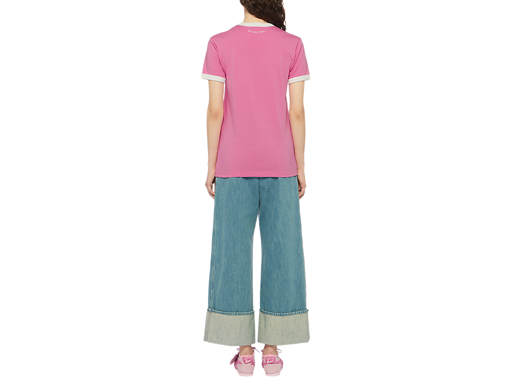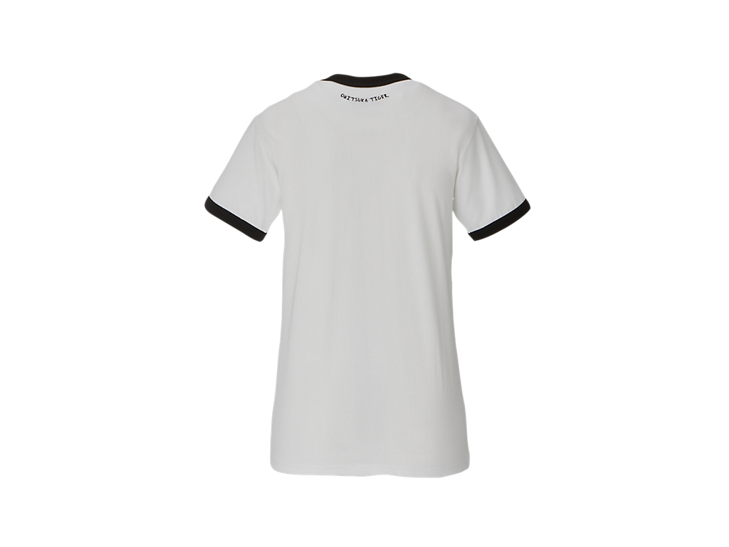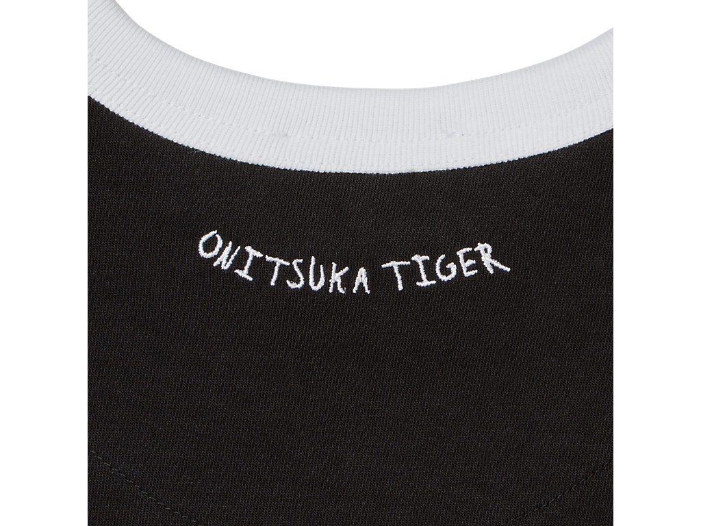 落ち着いたカラーリングによって、クラシカルな雰囲気をモダンにアップデート。左胸にはコラボレーションを象徴する刺繍グラフィック、そしてバックネックにはオニツカタイガーの文字がさりげなく配置され、シンプルながらもアイコニックなデザインが光ります。