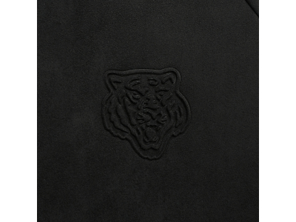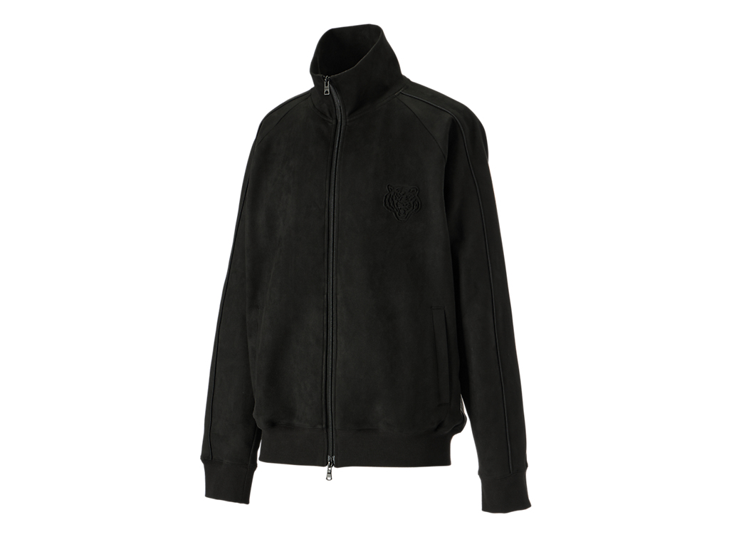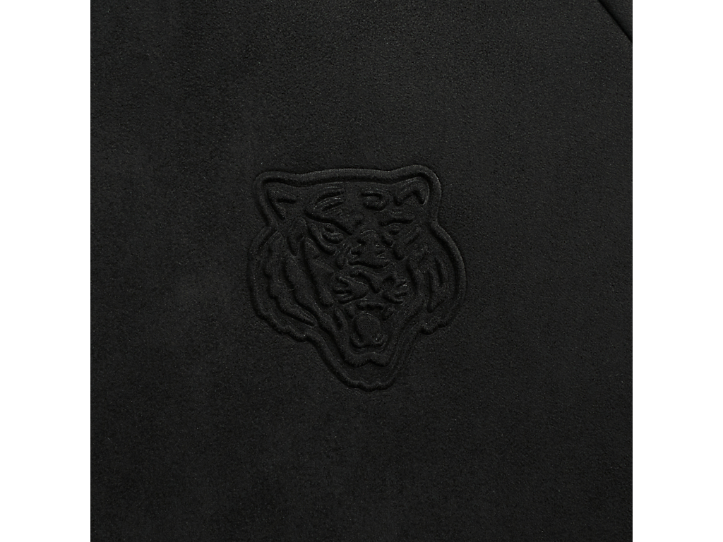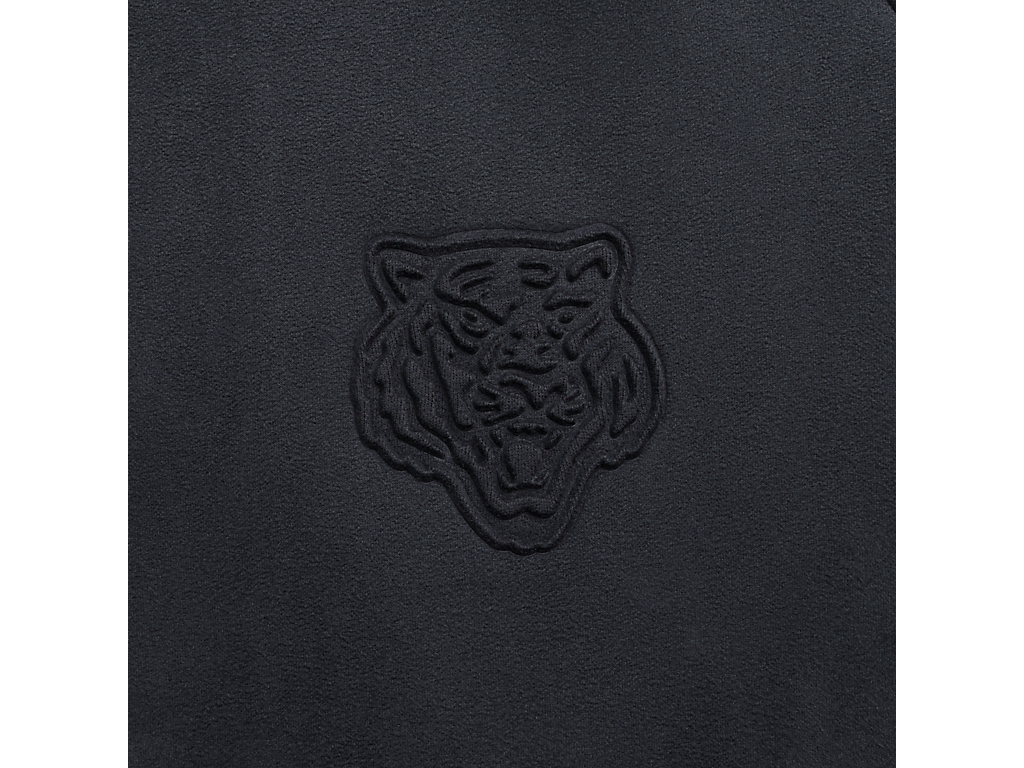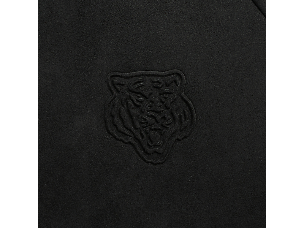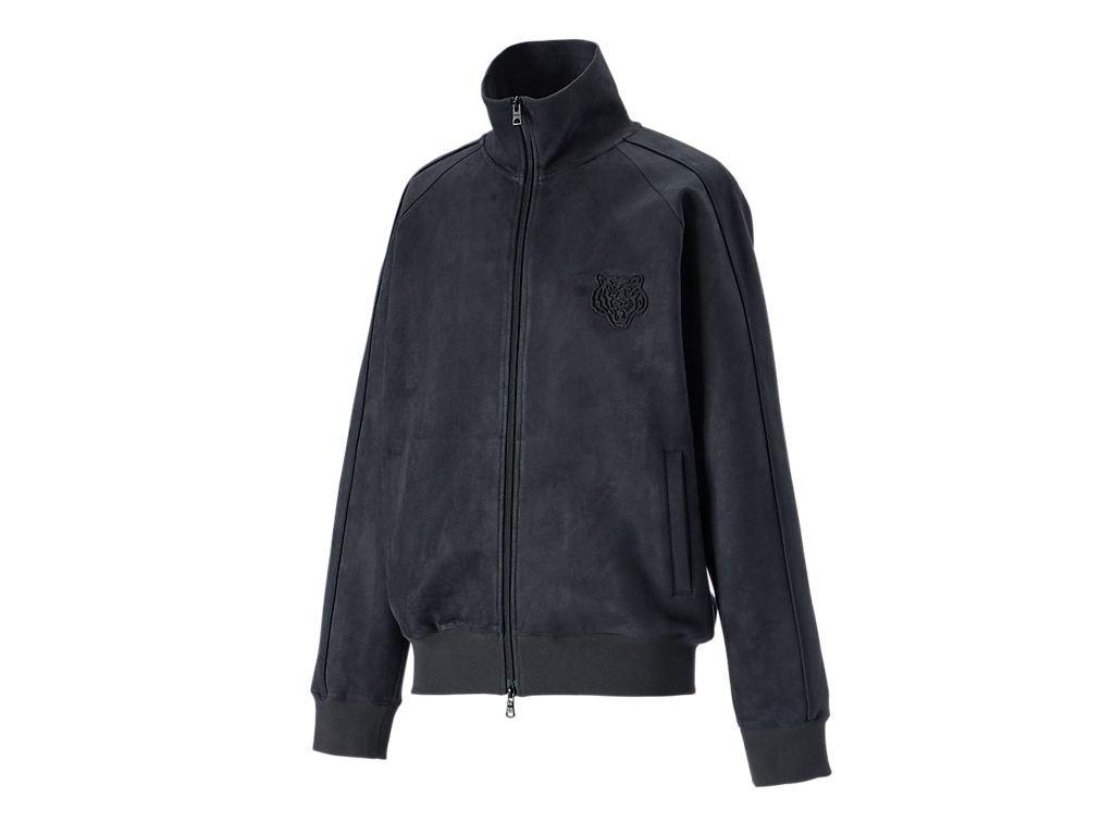 表地には高級感あふれるスエード風の素材が、ラグジュアリーな雰囲気を演出。両腕には身生地と同色の装飾が施され、シンプルながらも洗練されたスタイルが特徴です。左胸には、ブランドを象徴する虎のエンボス加工が施されており、さりげない存在感が魅力。また、ブランドロゴが刻印された2WAY ZIPを使用しており、機能性とデザイン性を両立しています。