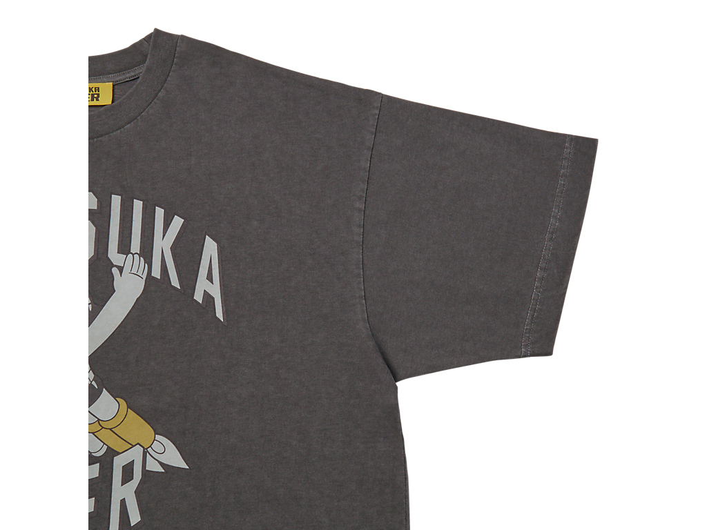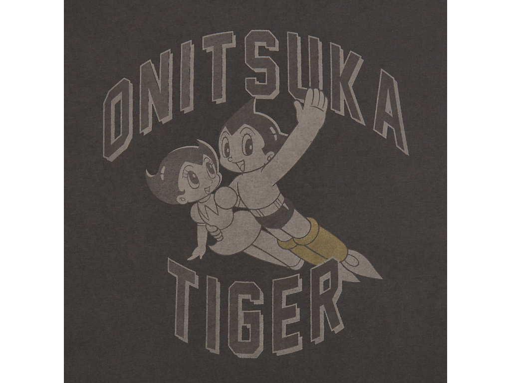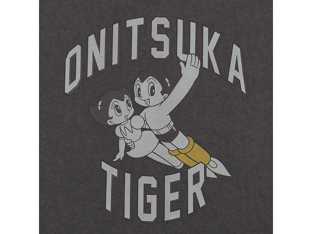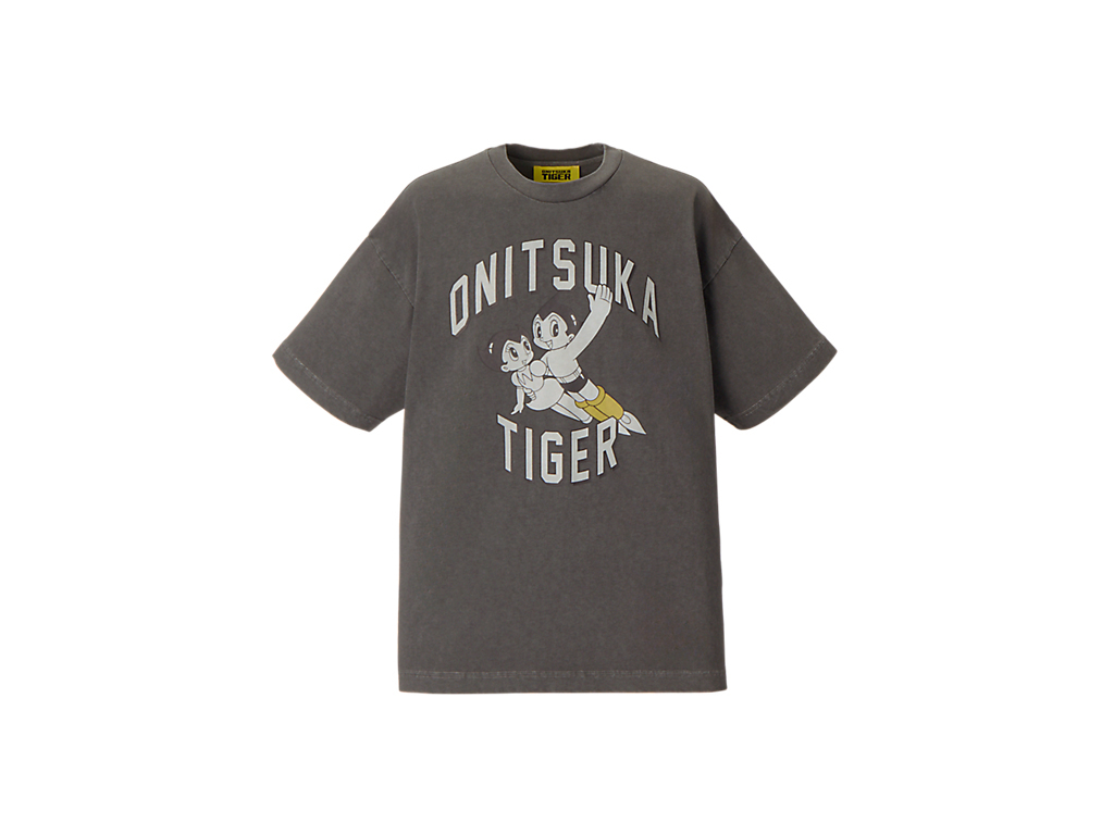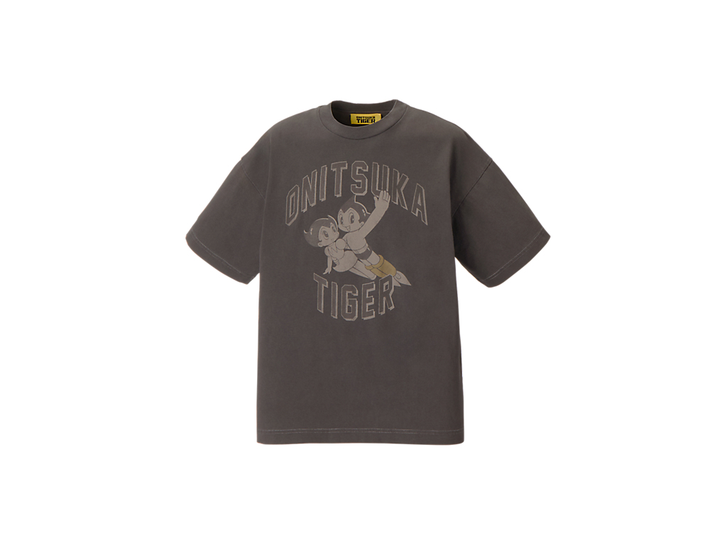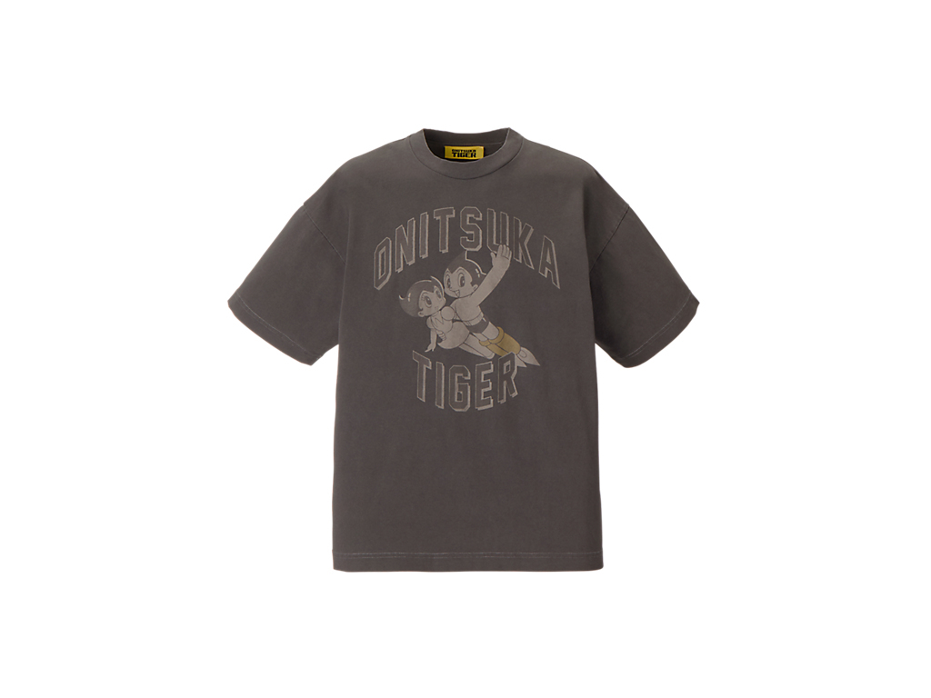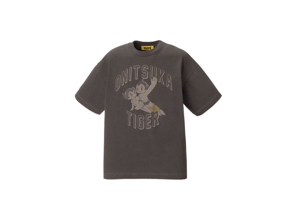 フロントには、タイガーイエローのブーツをまとったアトムと妹ウランが描かれ、ブランドネームと組み合わせたオリジナルプリントが遊び心を演出。