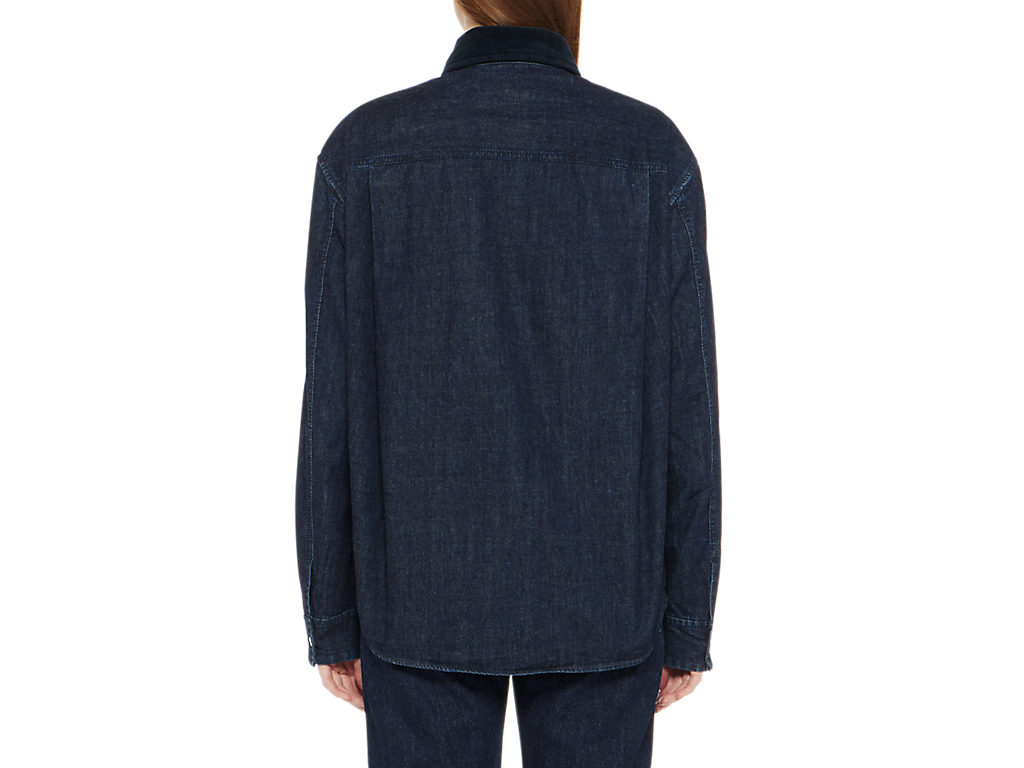 やわらかな手触りのコーデュロイ襟がカジュアルな仕上がりながら、全体のスタイルを引き締めるアクセントに。
