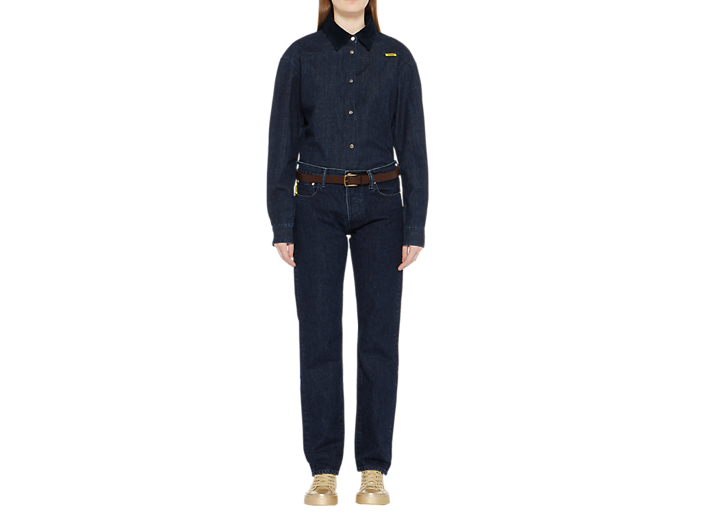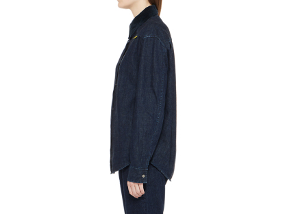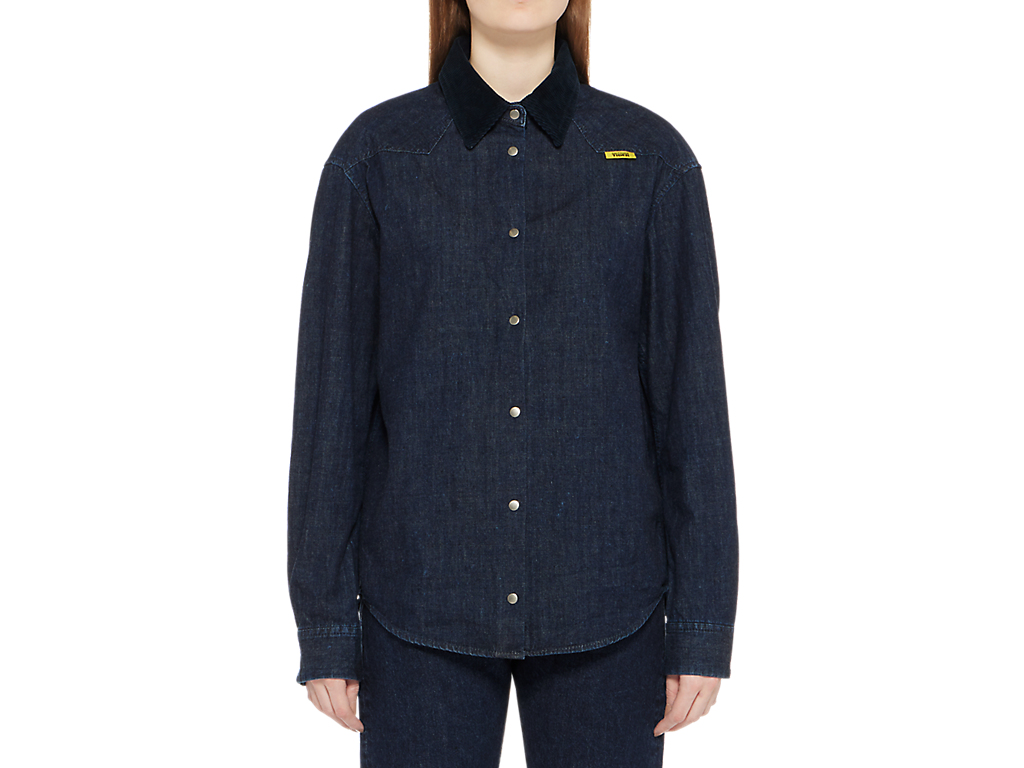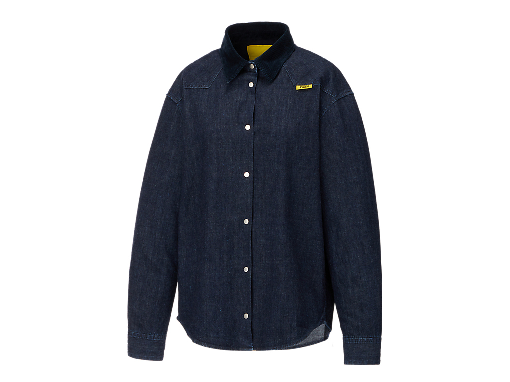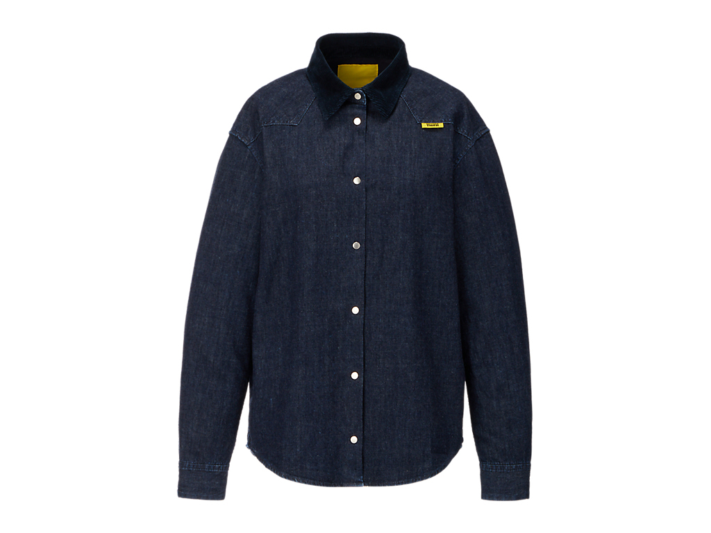 カウボーイシャツからインスパイアを得たデザインが特徴のウィメンズ・デニムシャツ。