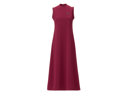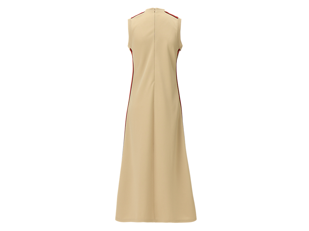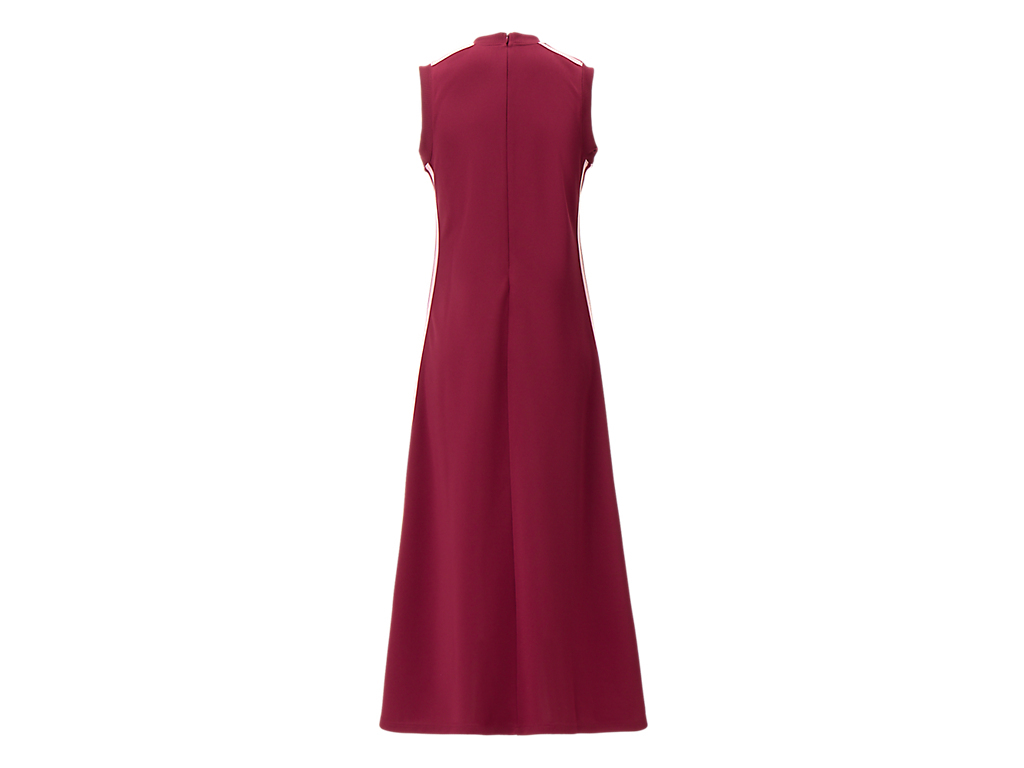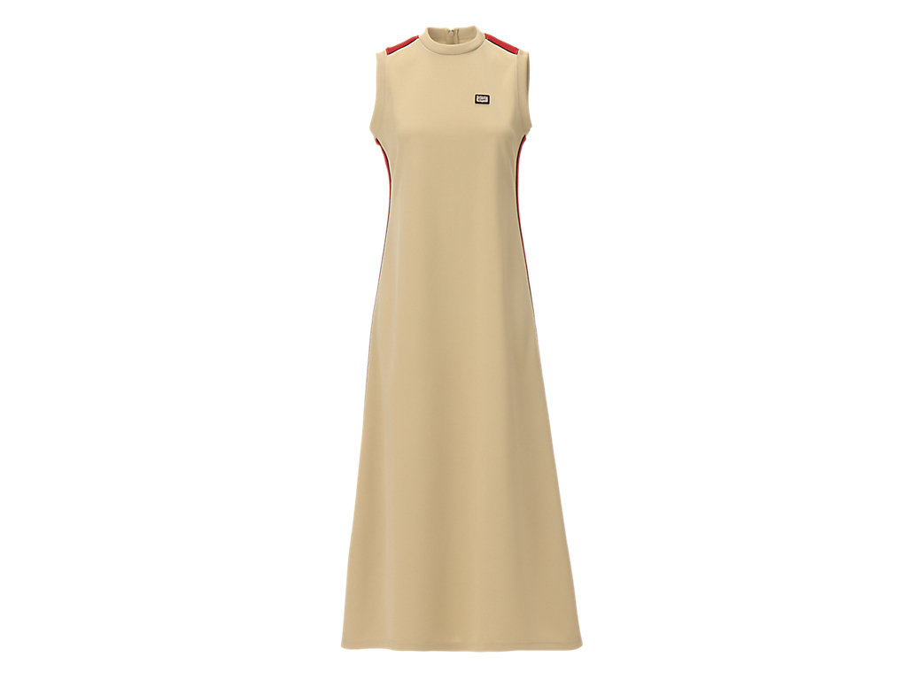 アーカイブのトラックシリーズ素材をドレスに落とし込んだ、ロング丈のスリーブレスドレス。