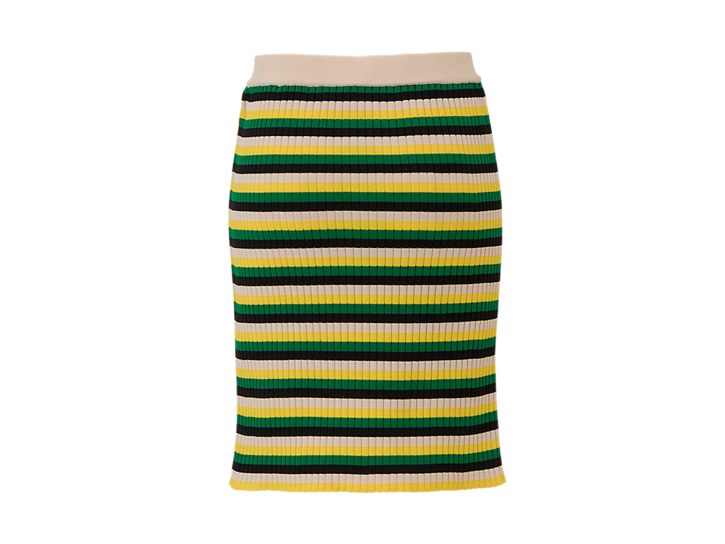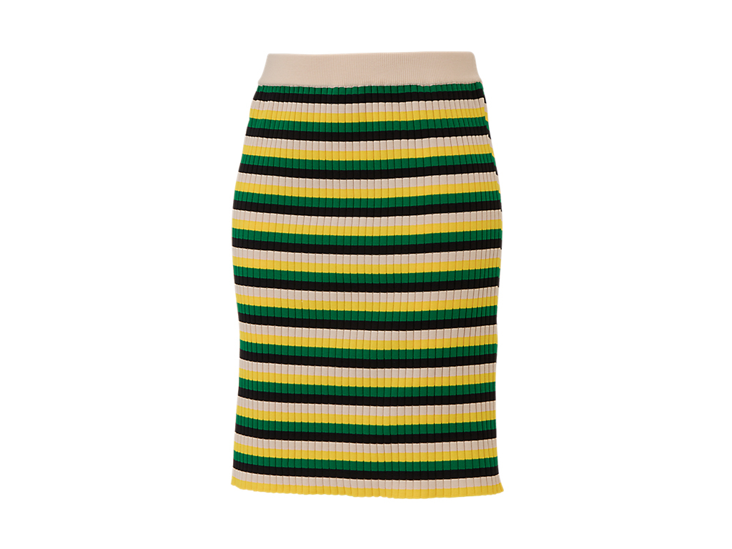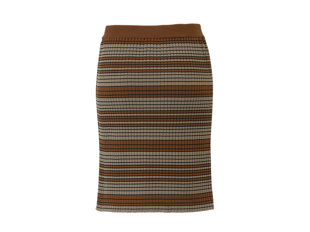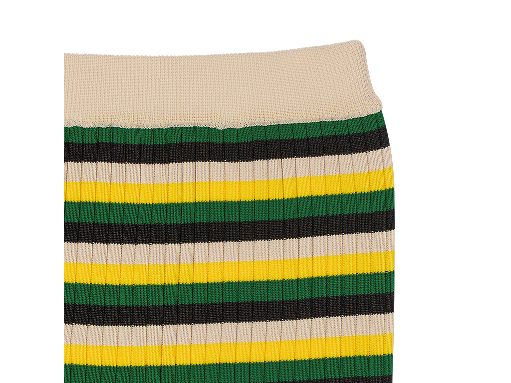 マルチカラーのストライプが目を引くこのモデルは、ただのスカートではありません。視線を集めるインパクトのあるデザインで、コーディネートの主役として活躍します。上質な日本製生地を使用し、日本国内で丁寧に縫製されたこのスカートは、細部にまでこだわった高品質なアイテムです。