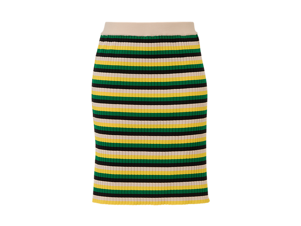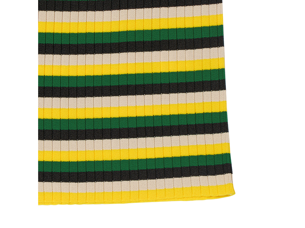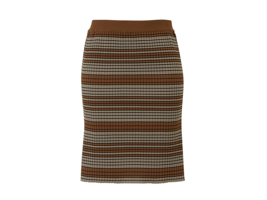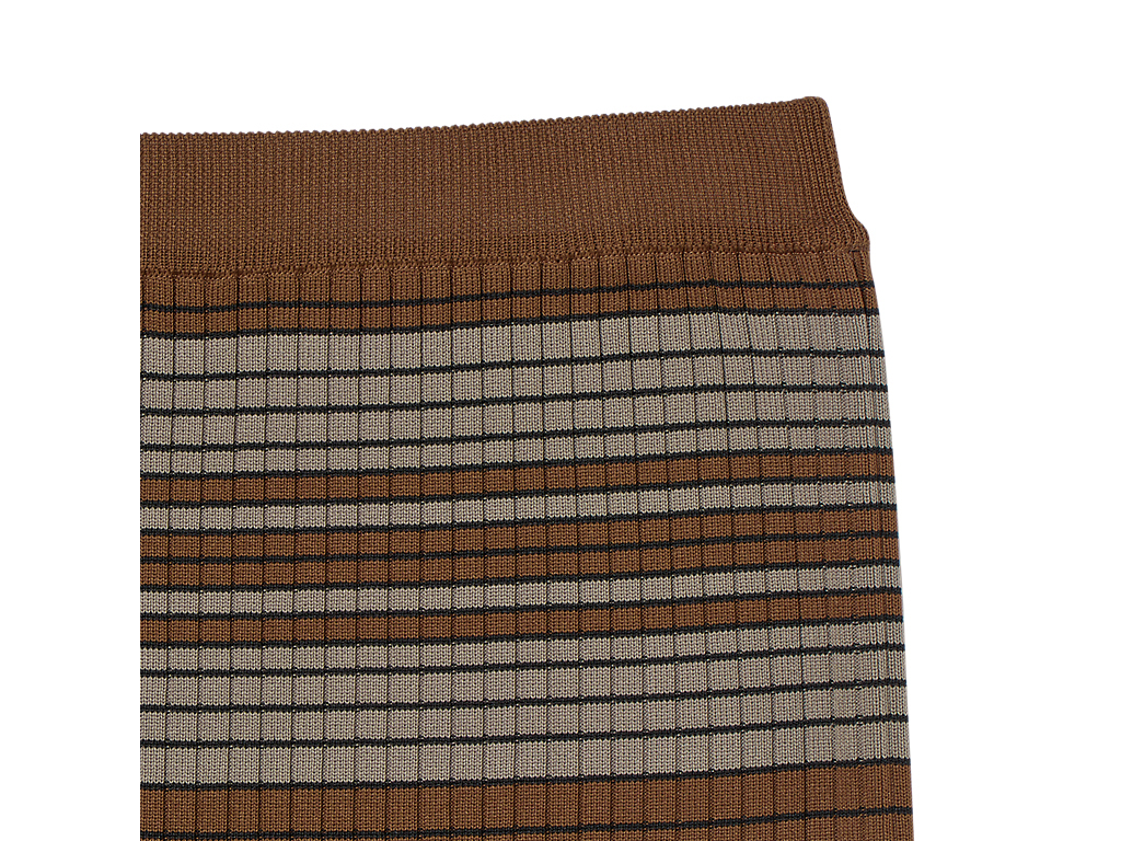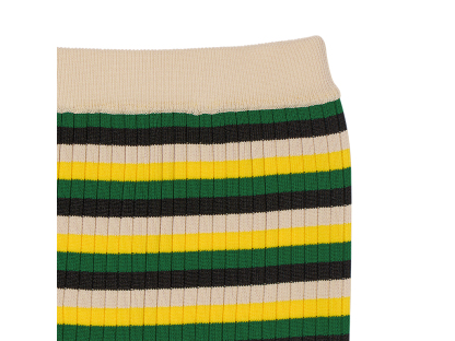 マルチカラーのストライプが目を引くこのモデルは、ただのスカートではありません。視線を集めるインパクトのあるデザインで、コーディネートの主役として活躍します。上質な日本製生地を使用し、日本国内で丁寧に縫製されたこのスカートは、細部にまでこだわった高品質なアイテムです。