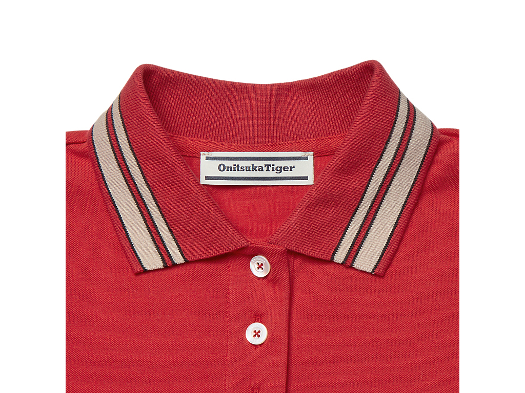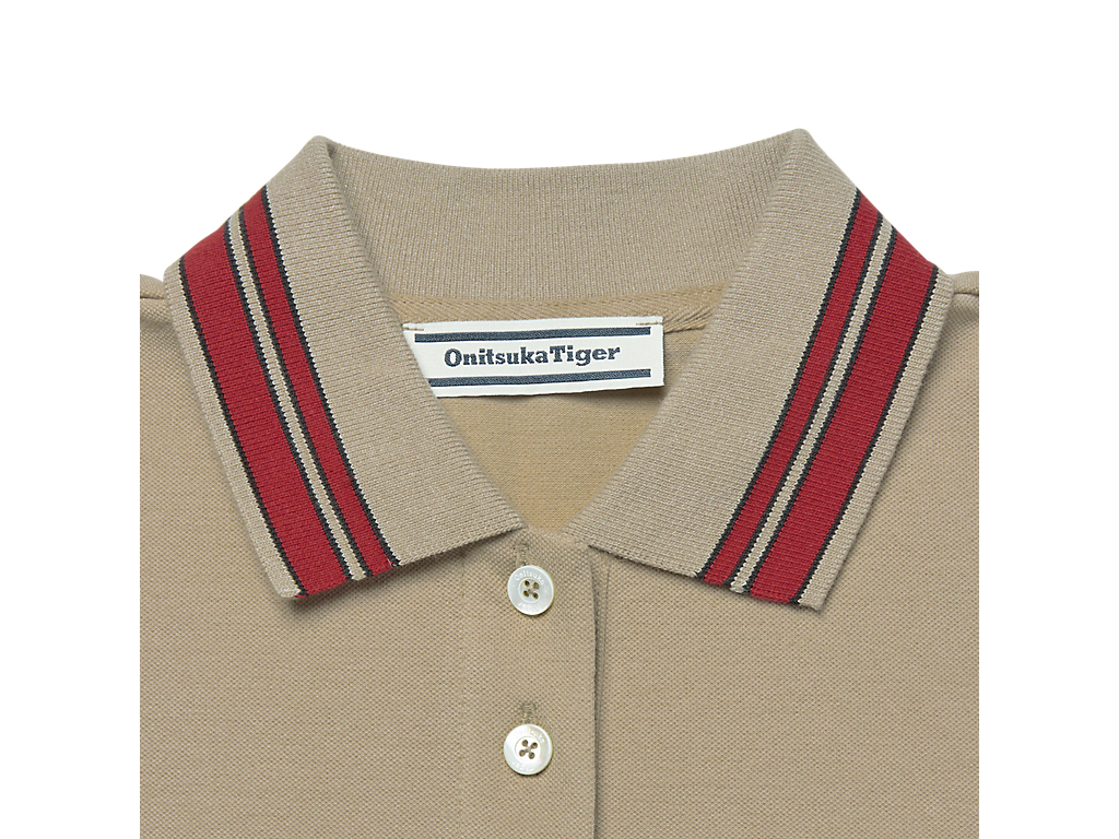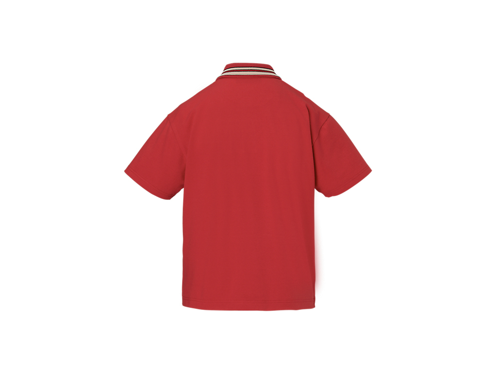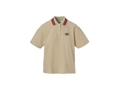 左胸のワンポイントや襟元のストライプが、シンプルなデザインの中に個性と奥行きを加え、ややボクシーフィットのショート丈のシルエットが女性らしいスタイルを演出。