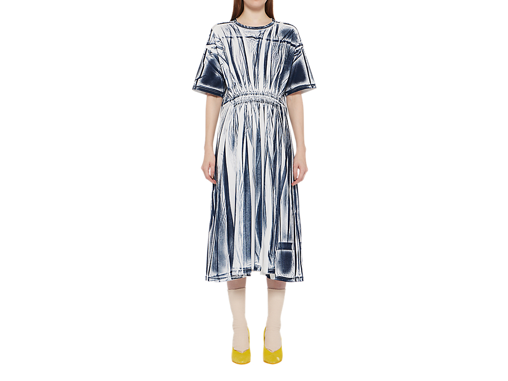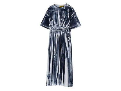 日本の職人の手刷りの技がひかる、Tシャツとドレスを融合した新感覚のロングドレス。