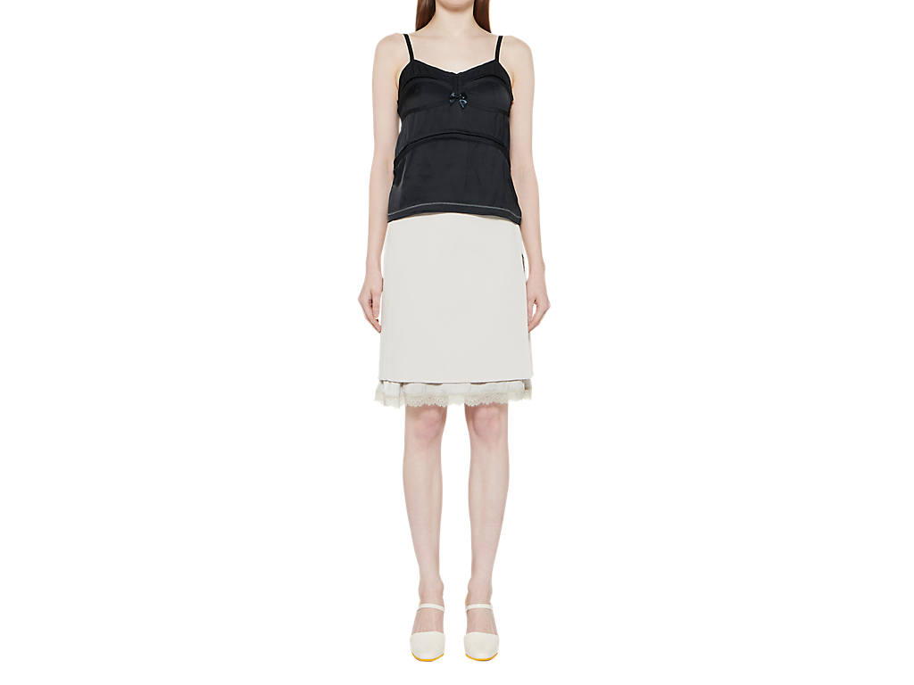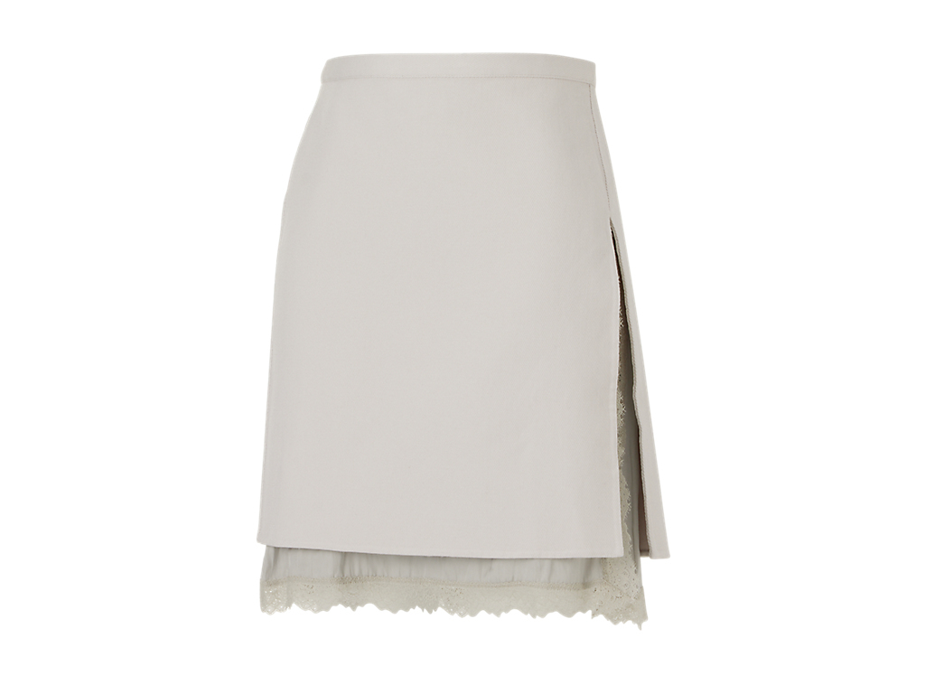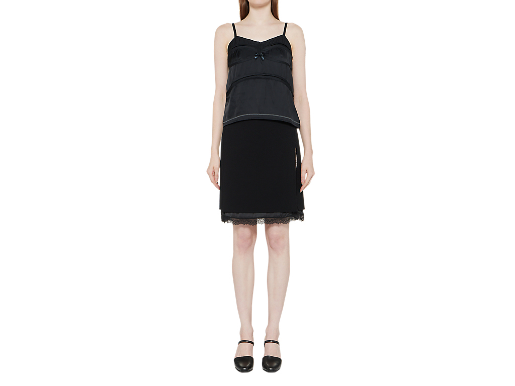 レース地のライニングと大胆なスリットが上品な表情を演出。